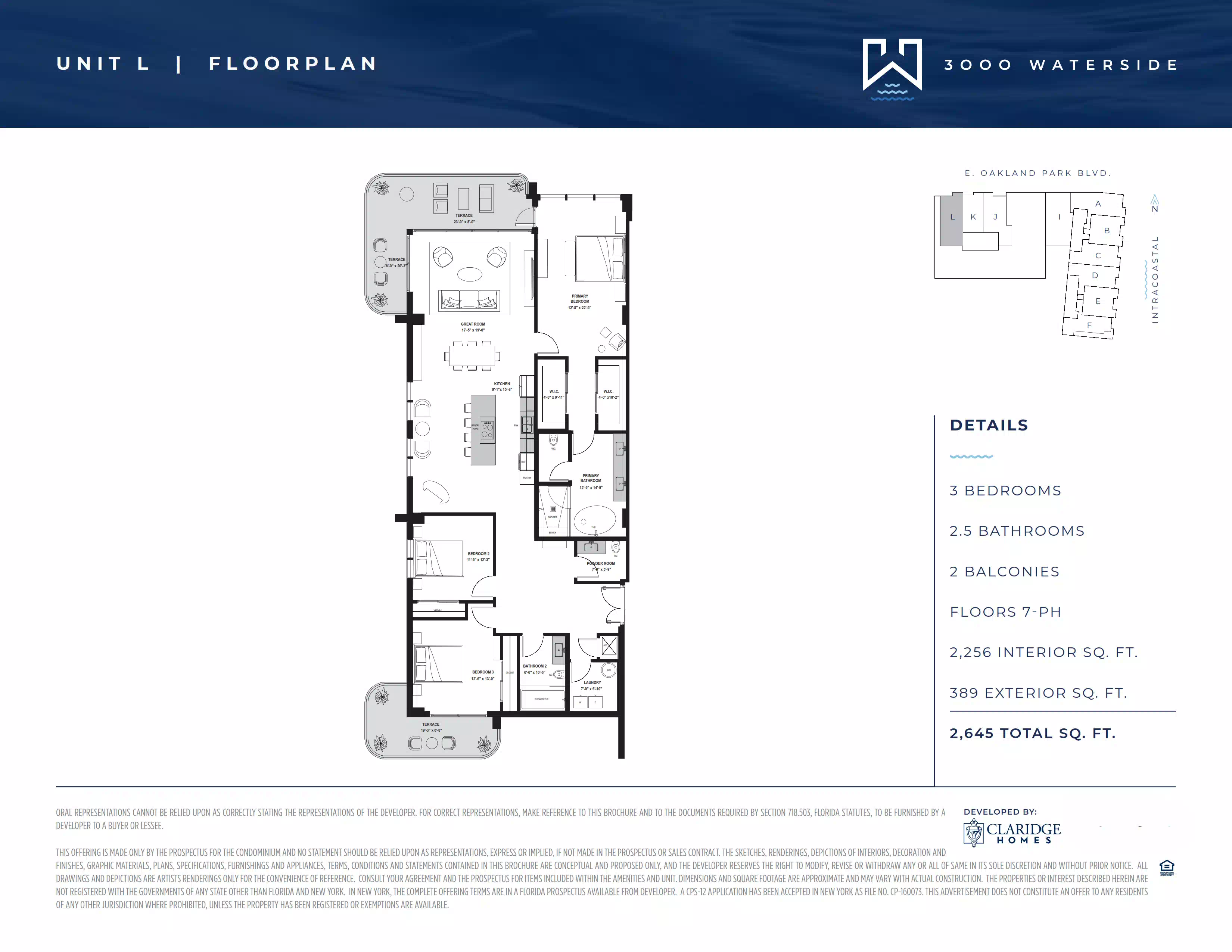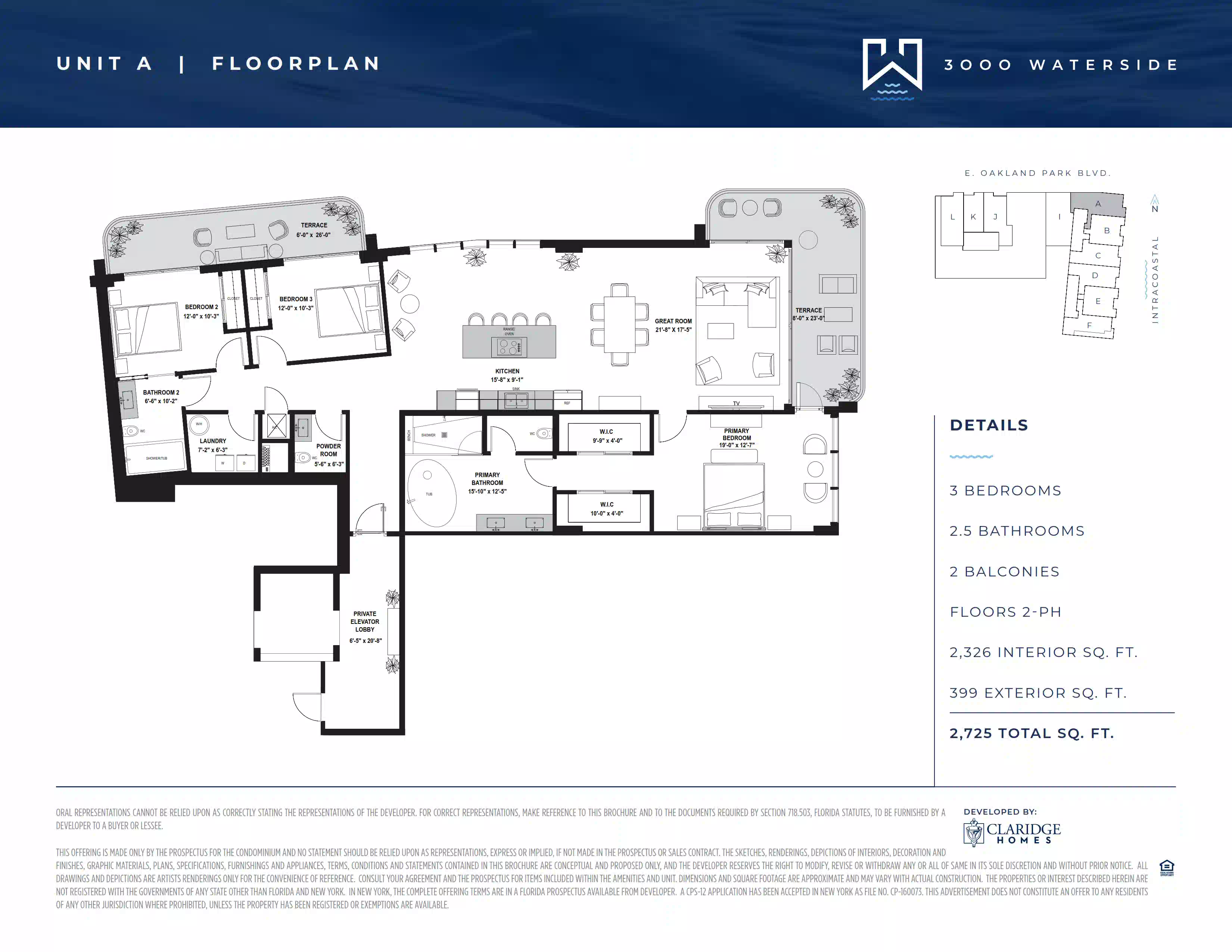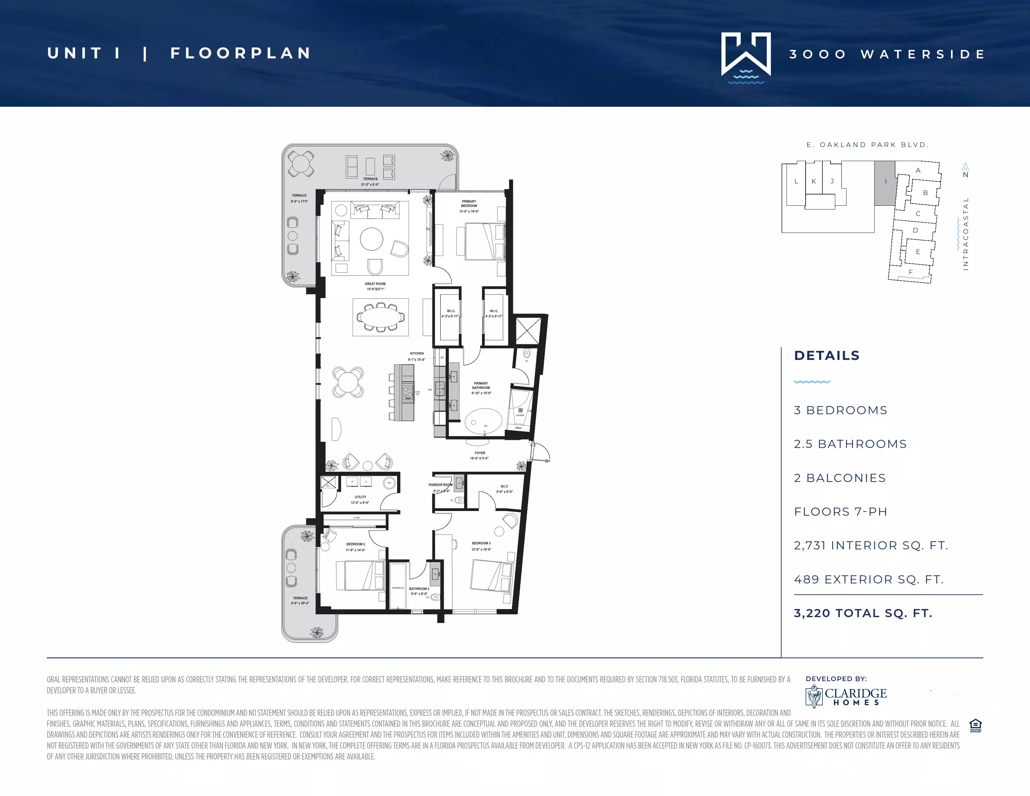 Ubicado en 3000 East Oakland Park Boulevard, Fort Lauderdale, Florida 33306, el proyecto se encuentra en una de las direcciones más codiciadas de esta zona del sur de Florida. Playas, marinas, restaurantes, tiendas, espacios culturales y paseos pintorescos junto al agua se encuentran muy cerca.