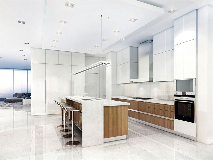 All apartments without exception have private elevator foyer, expansive living areas on terraces, glass doors and floor to ceiling windows, designer kitchens with exclusive Italian furniture, Hansgrohe faucets, quartz countertops and elite appliances by Gaggenau.