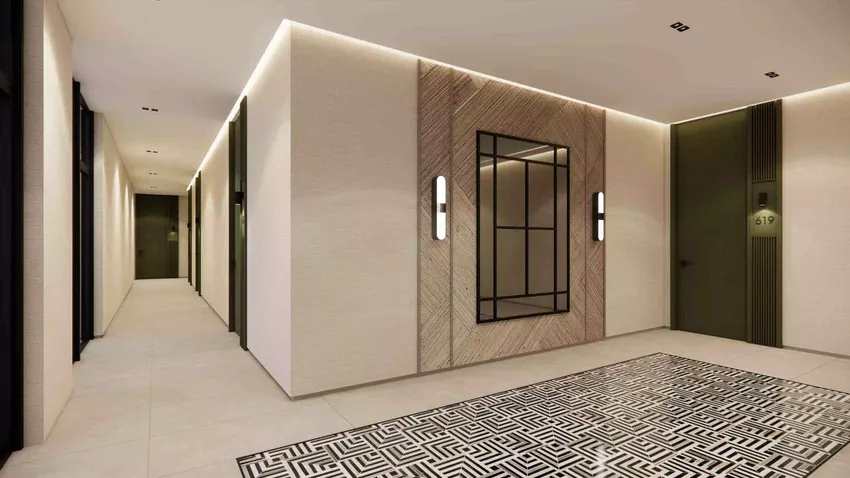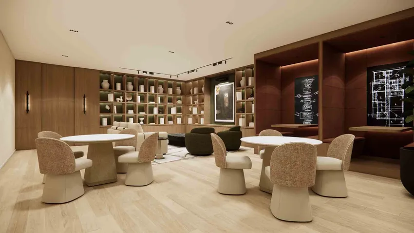 El diseño interior desempeña un papel fundamental en la identidad general del proyecto. Todas las áreas comunes y los espacios lounge han sido diseñados por Adriana Hoyos Design Studio, estableciendo un alto estándar estético y espacial. Los interiores se expresan en un estilo cálido, elegante y profesional que transmite estatus sin excesiva formalidad.