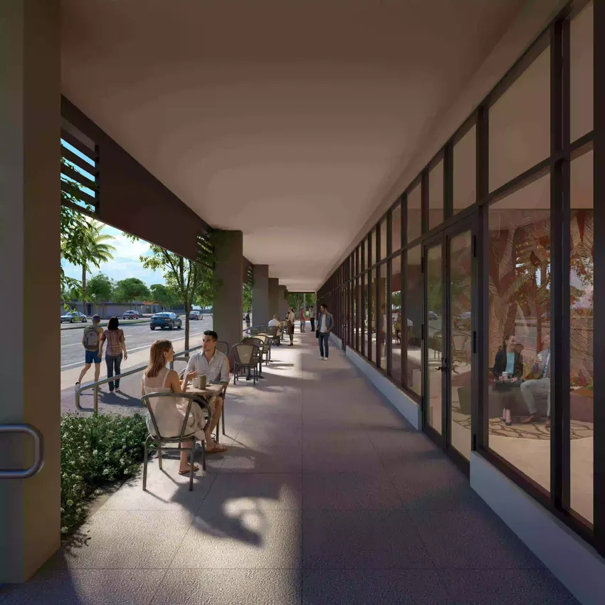 Estos espacios comerciales están respaldados por un pasaje peatonal bien diseñado y áreas ajardinadas con asientos, lo que hace que el proyecto sea más dinámico y más cómodo para el uso diario.
