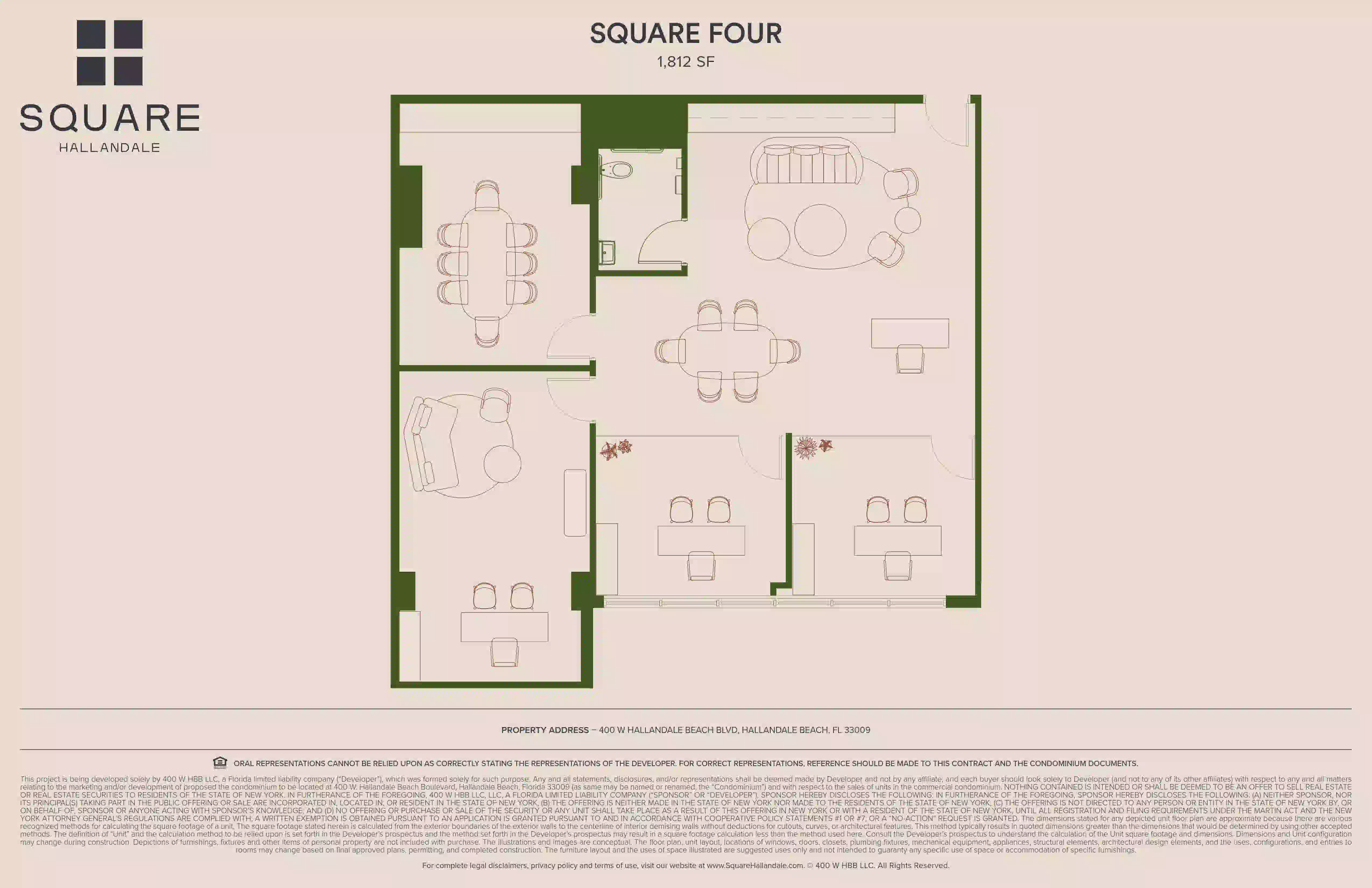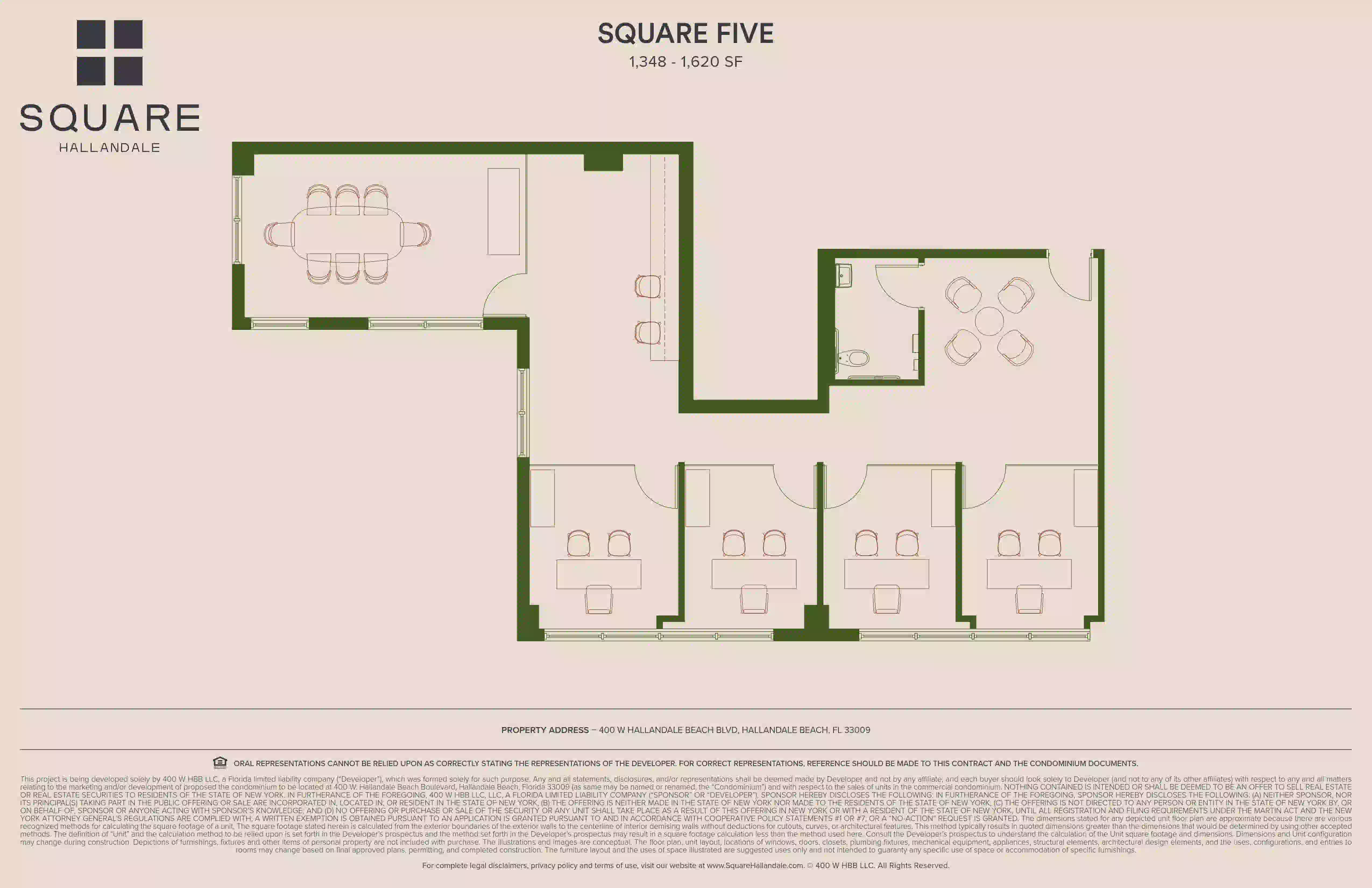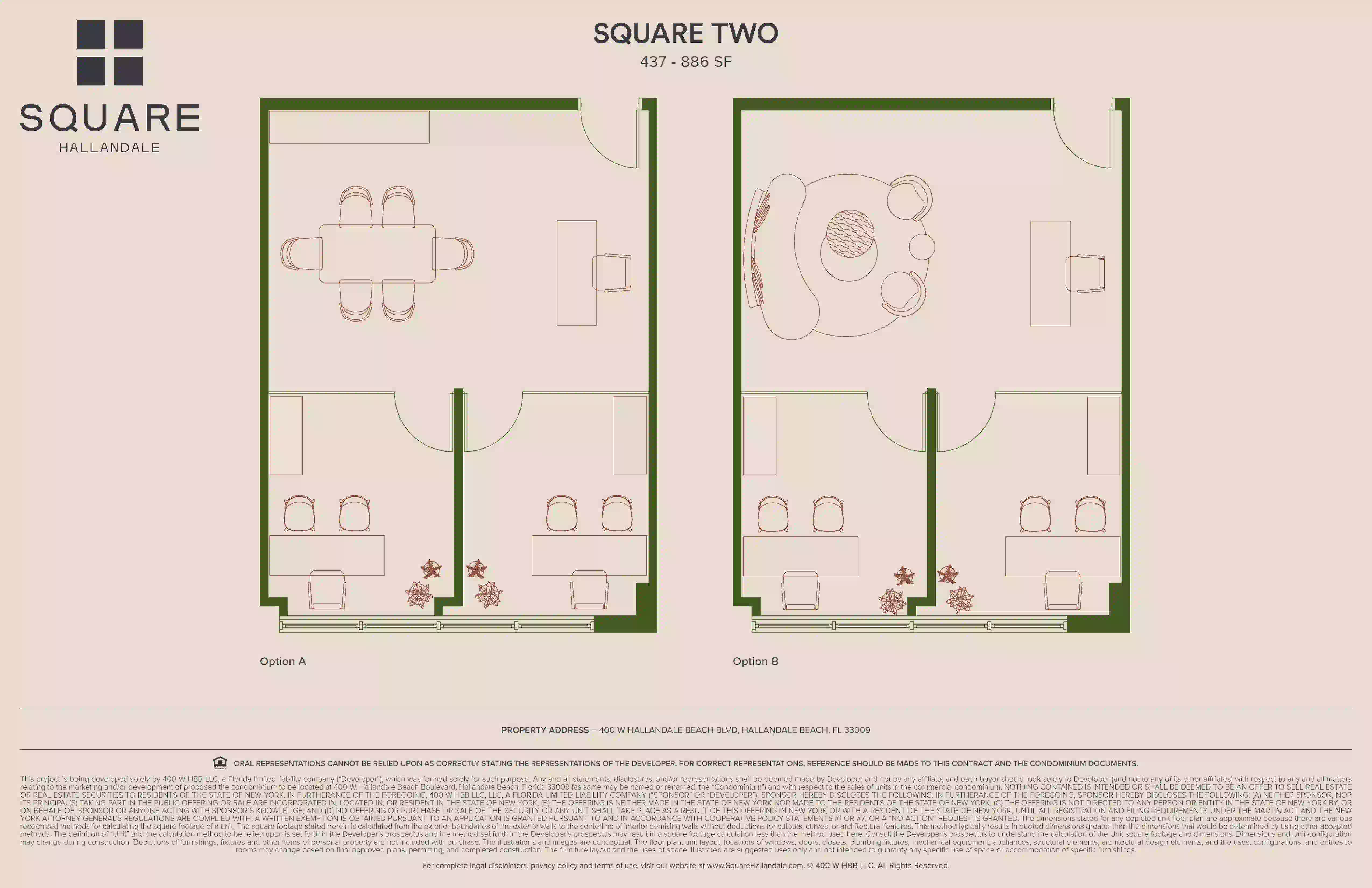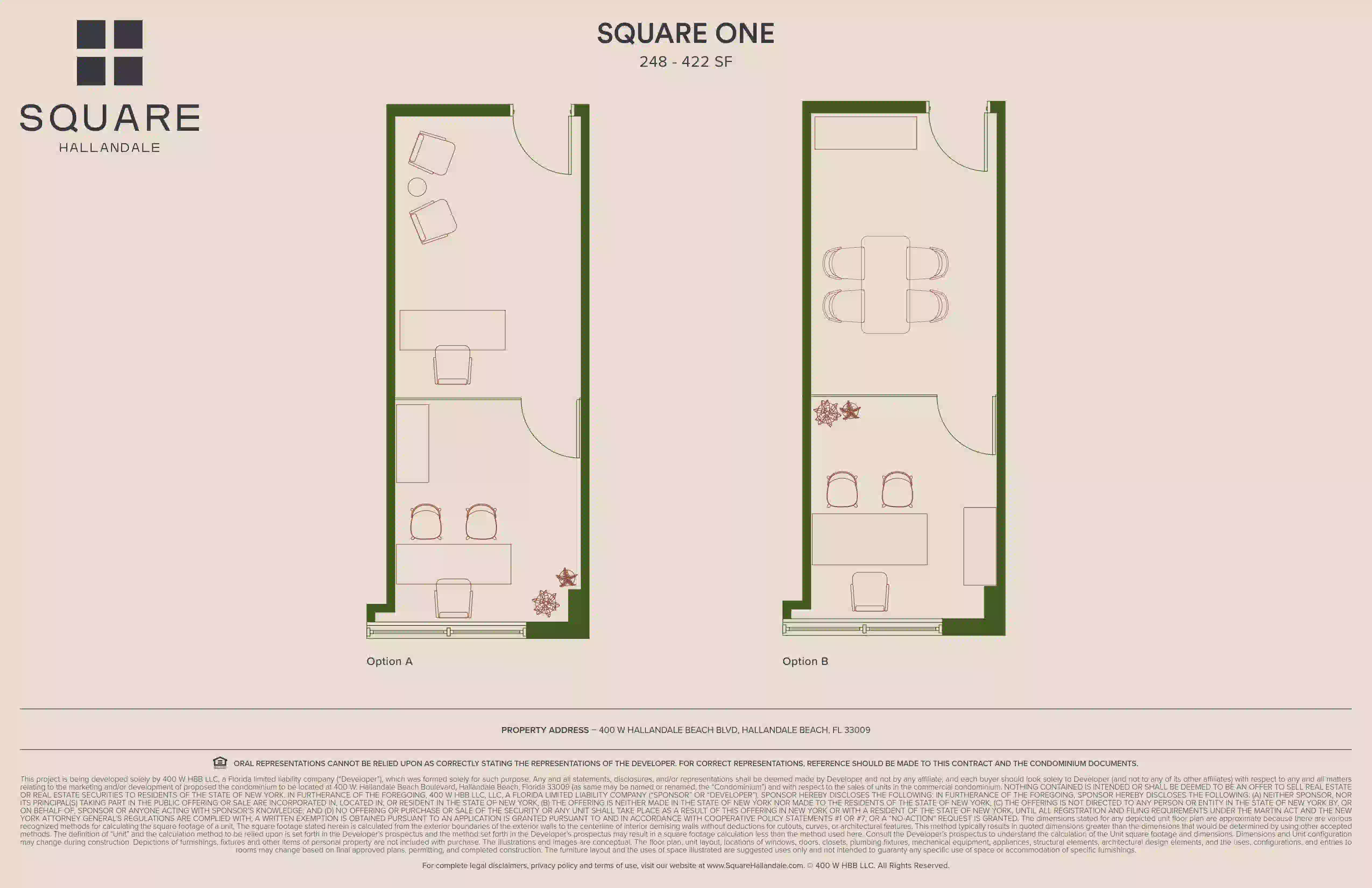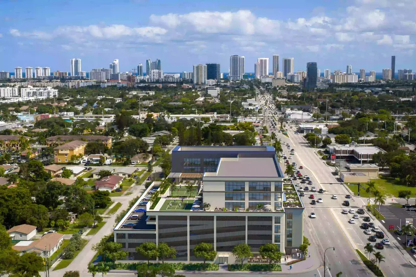 Ubicado en 400 W Hallandale Beach Blvd, Hallandale Beach, FL 33009, el proyecto es un condominio mixto Class A de ocho niveles que integra oficinas privadas, espacios comerciales en la planta baja, amenidades de wellness y recuperación, servicios digitales y áreas comunes diseñadas profesionalmente.