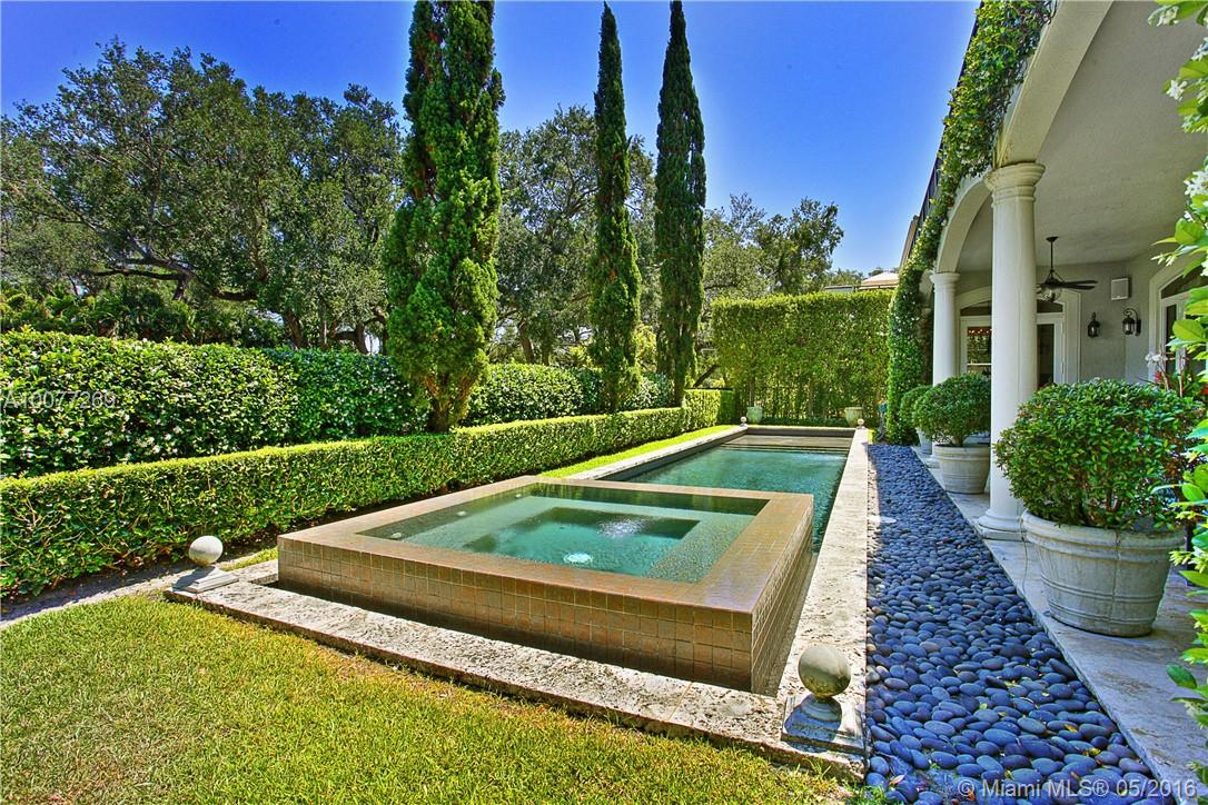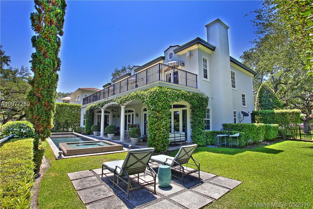 This exquisite French style home built in '06 is awe inspiring! Impressive finishes & details include oversized baseboards & moldings, high coffered ceilings, fireplace, impact wndws & drs & gracious spaces. Elegant entry hall, frml liv & din rms w/ lrg Fr drs, kit, breakfast rm & fam rm downstairs invite entertaining of any scale. The back patio is peaceful w/ vws of the Biltmore, black bottomed pool & Jacuzzi, manicured grounds & Nightblooming Jasmine. Master suite is stately & opens to the back patio.