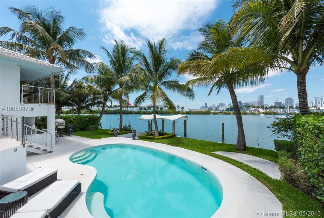 Waterfront Gem on Gated Palm Island. Stunning city views & quality finishes w/ many thought out details. Modern home, Open & Bright. 5bd/4bth, Large Master Suite, custom closets. Theater room w/ private Wine storage. Chef's kitchen, Italian Cabinets, Subzero & Gaggenau appliances, Industrial hood, Prep sink, Deep fryer, Conventional & Steam Oven, Teppanyaki grill & Wine Station. 80' waterfrontage, heated pool, Outdoor Kitchen, huge terrace. Savant sysytem, Bang & Olufson Audio. Solar Panels.