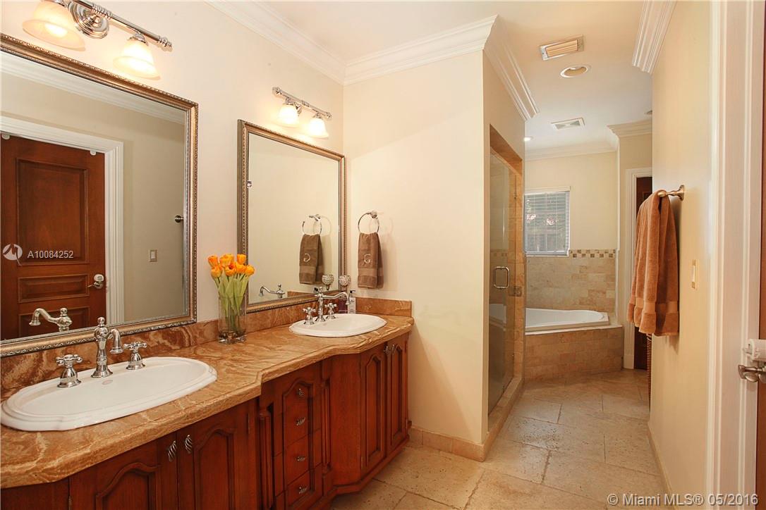 Fabulous updated home in one of the most desirable areas of Coral Gables. Features 4 bedrms, a service room & 5 bathrooms. Beautiful Jerusalem Marble stone floors throughout with Mahogany accents. A fabulous kitchen featuring all new Thermador appliances. Bathrooms are all marble with the finest finishes, the Master bathroom features a separate shower & a Jacuzzi tub. Built in wood closets throughout. Impact windows & doors. Lovely French doors leading to a spacious covered patio, perfect for entertaining