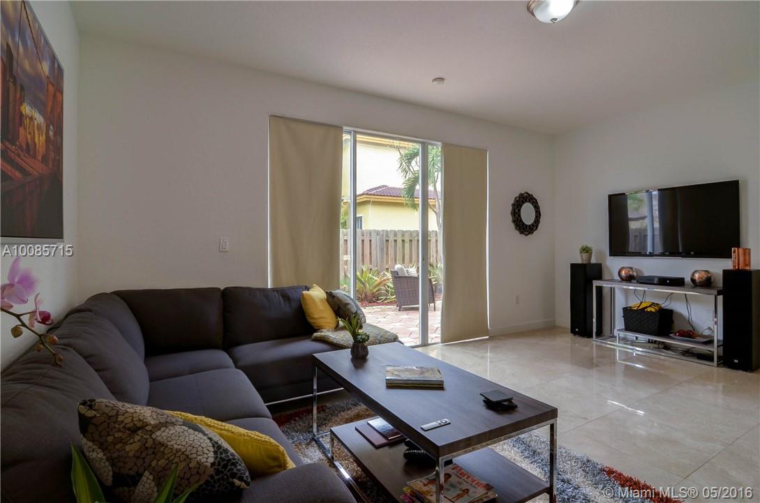 Striking and voluminous! Turnkey coach home in Islands of Doral, one of the most desirable communities. Ornamented with marble floors in living areas and natural bamboo wood flooring in bedrooms and stair. Fine wood kitchen cabinets with granite counter tops stainless steel appliances. One full bedroom and bath downstairs. Finished with accordion shutters. Low HOA fees that include access to remarkable club house, pool, gym, tennis, basketball courts & much more. Walking Distance to the wonders of Doral.