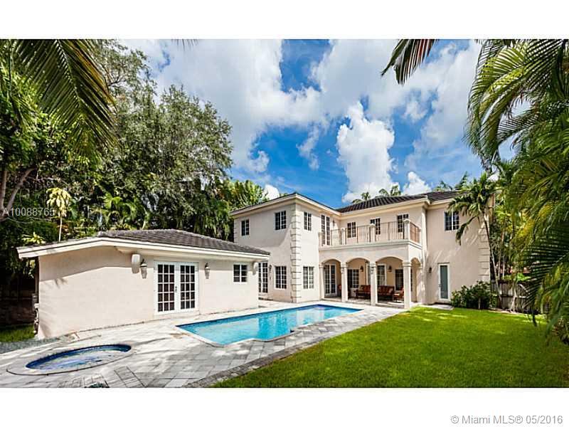 Situated in the heart of Coconut Grove this stunning home is a masterpiece. The home features a stunning living room with a 2-story ceilings, formal dining room, and a gourmet kitchen with a bar area that is adjacent to the family room. The large bedrooms have walk-in closets and ensuite baths. Relax in the beautiful master suite with a private balcony, his and her walk-in closets, and spa-like bath. Enjoy entertaining on the back covered patio overlooking the pool, Jacuzzi, and guesthouse.