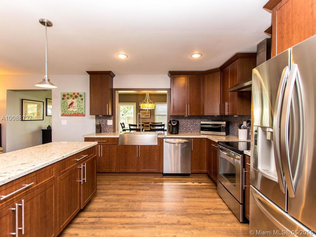 Lovely remodeled spacious home w/many updates including a beautiful designer style kitchen with granite counters and stainless steel appliances; updated bathrooms; custom built cabinets in all closets; Impact windows and doors including garage door; marble sills throughout; wood laminate flooring throughout; no carpet; A/C replaced in 2013; Florida room addition used as formal dining room; large covered patio overlooking large fenced yard with plenty of room for pool; outdoor shower & much more!