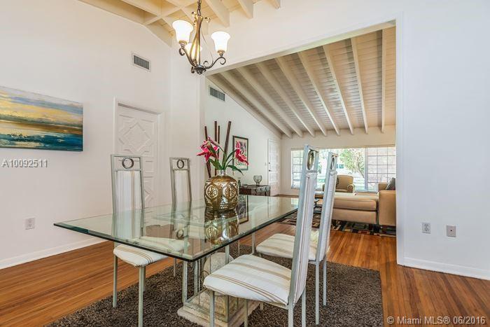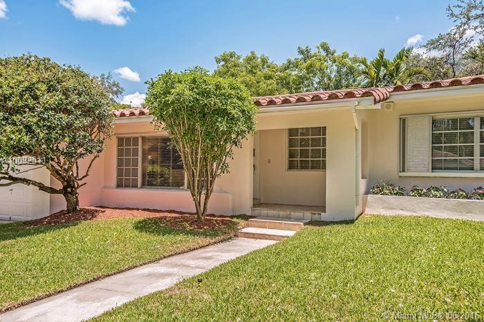 Lofty beamed ceilings and lovely wood floors welcome you inside this happy home! Updated kitchen with gas range, and well-proportioned rooms are complemented by open plan living and dining areas, and an ample family room with space for an office. On a beautiful residential Coral Gables street with fenced back yard for Fido, this freshly painted home is very convenient for access to University of Miami and South Miami. Bonus: A-rated David Fairchild Elementary!