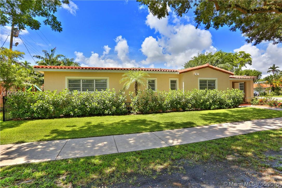 Enter in & feel at home in this impeccable, timeless Coral Gables property. The light & bright living spaces include spacious formal living and dining rooms, updated kitchen with stainless steel appliances & backsplash, family room opening onto the back yard. Hardwood & travertine floors run throughout this 3Br/2.5Ba home. Master suite has 2 closets & lovely bathroom. Situated on a corner lot on an extremely quiet street w/ a 1 car garage, pavered driveway, & charming front porch.