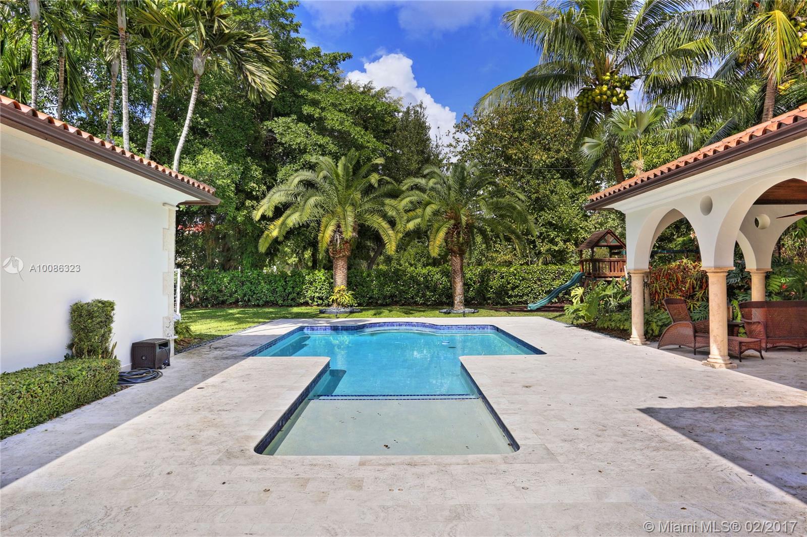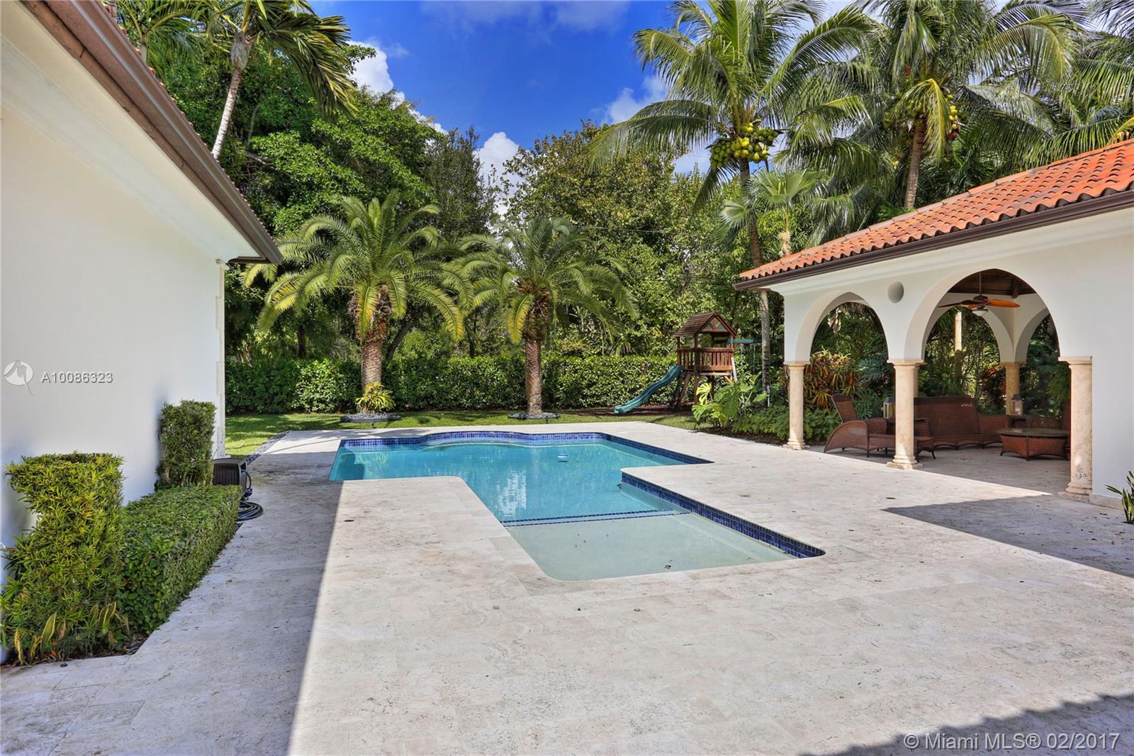 Exquisitely maintained property with excellent floor plan in north Pinecrest. Luxury appointments include natural stone and wood finishes, impact-resistant windows/doors, S/S appliances, crown moldings, coffered ceilings, built-in speakers, salt water pool filtration, air-conditioned garage with tile flooring, and much more. Beautiful loggia with tongue-and-groove ceilings overlooks large pool area, with yard large enough for grass and children's playground. Gated property, best offering under $2 M.