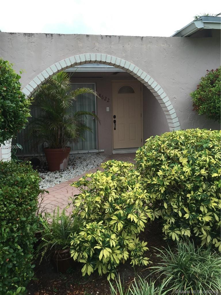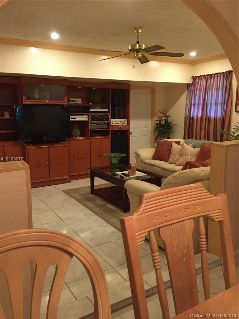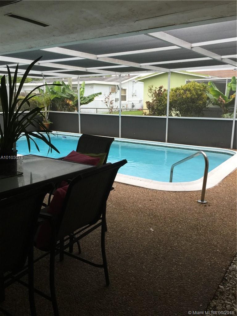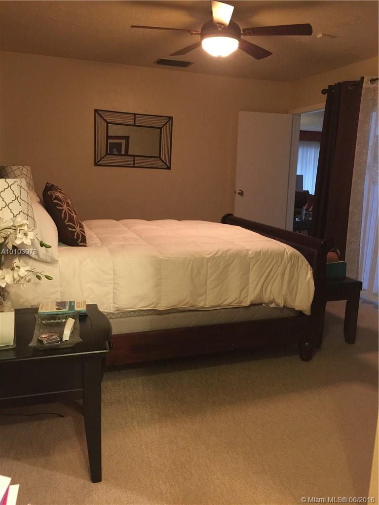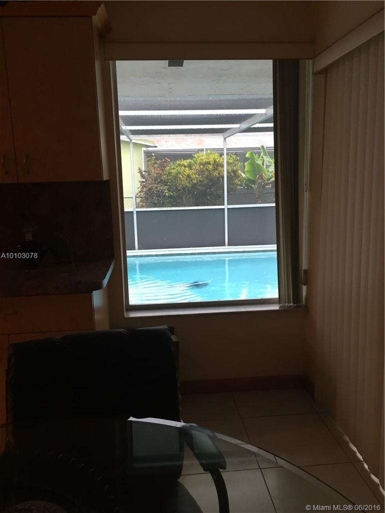 Beautiful and well kept one story pool house. 3 bedrooms and 2 bathrooms. The interior has tile throughout the house and carpet in the rooms. Garage converted into a Family Room. 4 car spaces outside for parking. Master walk in closet, from Master bathroom door to exit to the Pool. CLOSING WILL BE IN ONE CONQUEST TITLE & ESCROW.