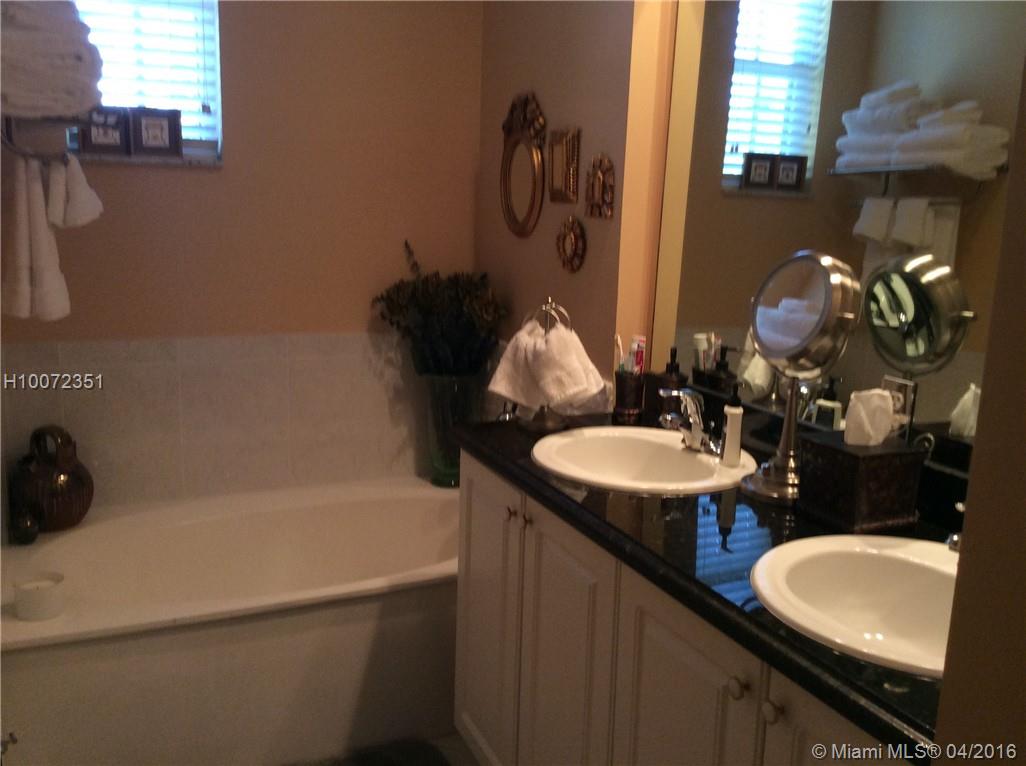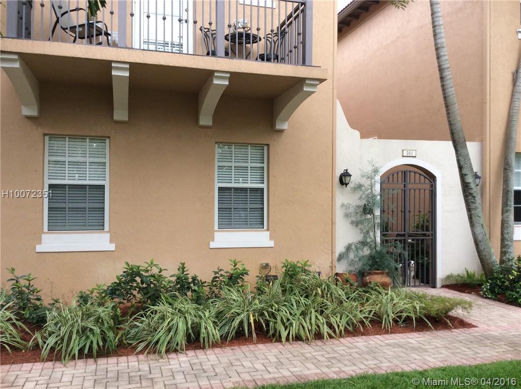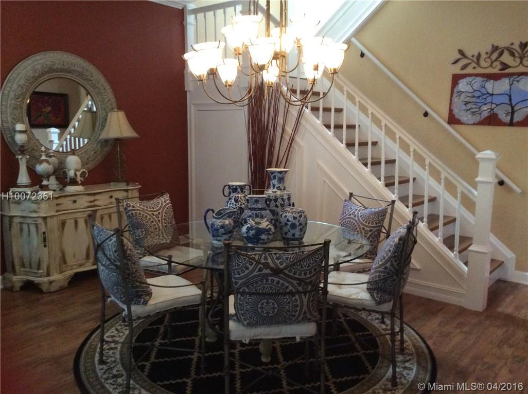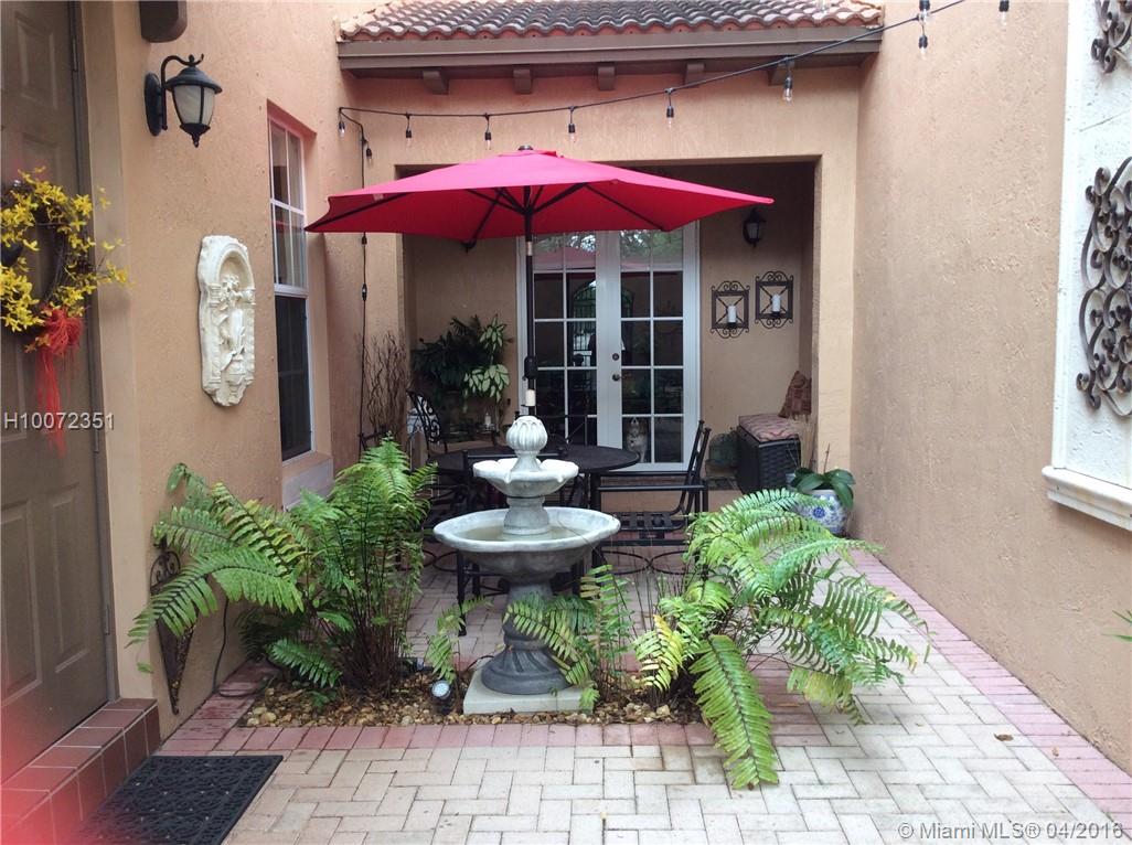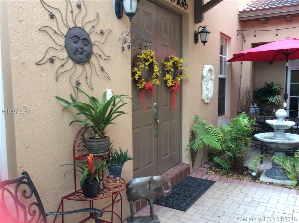 Immaculate Mediterranean inspired townhouse with sophistication and Elegance. Perfect match for any buyer. 3 Bedroom 2 and a half bath corner unit with open balcony and family room. Upgraded custom Kitchen, granite counters, dove white cabinetry w/ lighting, stainless steel appliances, engineered wood flooring, crown molding, custom made stair case with storage, roman tub, double sinks w/separate shower, washer & dryer, hurricane shutters, Community pool, exercise room, and more. Restaurants & shopping.