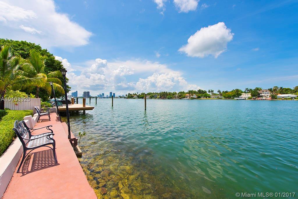 Best waterfront deal in South Beach. BACKUPS WANTED. Turnkey. Immaculate complete renovation, with classical features maintained. Total area of 2,225 sf.- 3BD, 2.5 BA wide waterfront on prestigious guard-gated Palm Island. Significant original features. Huge volume; 11' ceiling, with layered moldings. New electric, plumbing, impact doors and windows. New roof, sprinkler system, A/C system, landscaping. All new high grade appliances. Renovated bathrooms, full laundry room. New electric garage door. Quiet water, facing Hibiscus Island. 50' of waterfront, 7,000 sf lot. Room for pool. Excellent position on the street. Serene South Beach living at its finest.