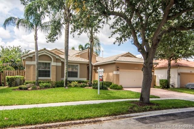POPULAR "NEWPORT" MODEL IN PRESTIGIOUS PEMBROKE FALLS * THREE WAY SPLIT FLOOR PLAN 4 BEDROOMS, 3 BATHROOMS, AND FABULOUS POOL WITH COVERED PORCH * FULL EAT-IN KITCHEN W/ CENTER ISLAND, OAK CABINETS, UNDER CABINET LIGHTING, GRANITE COUNTER-TOPS W/ EXTENDED SERVING BAR AND FULL WALK-IN PANTRY * PORCELAIN ITALIAN TILE * NEW CARPETS IN THE BEDROOMS * BAHAMA SHUTTERS IN MASTER BEDROOM AND HUNTER DOUGLAS WINDOW TREATMENTS * GATED COMMUNITY WITH RECREATION CENTER * HOA INCLUDES CABLE,FIBER-OPTIC INTERNET & ALARM