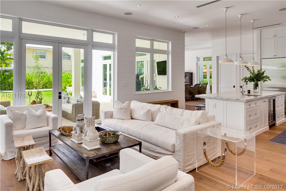 Stunning show stopper! South Gables new construction. Casual Elegance with open kitchen, large family and living area. 11' ceilings, wide plank wood floors, chefs gourmet top of the line kitchen, all overlooking outdoor covered terrace and pool. Impressive summer kitchen, perfect for entertaining and dining alfresco. High end sound and security system. Spabath- Designer closets- elevator- second floor terrace and balconies. Car garage fits 1 1/2 cars.