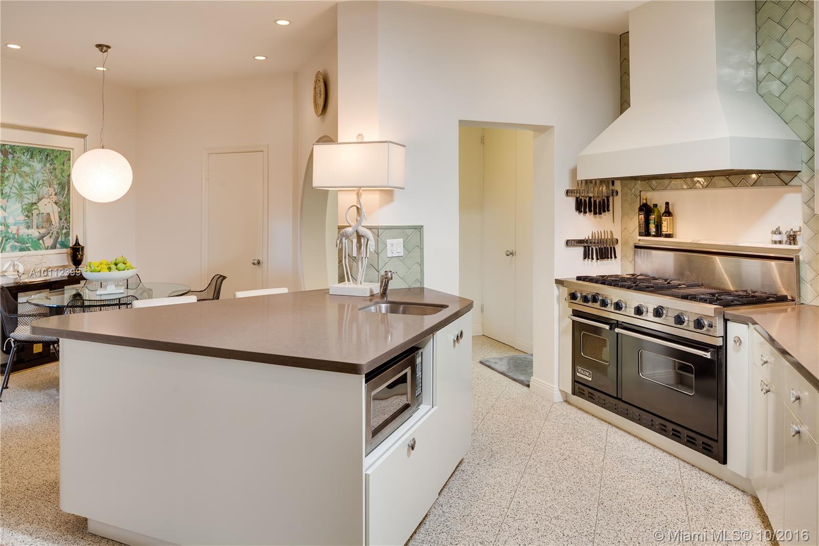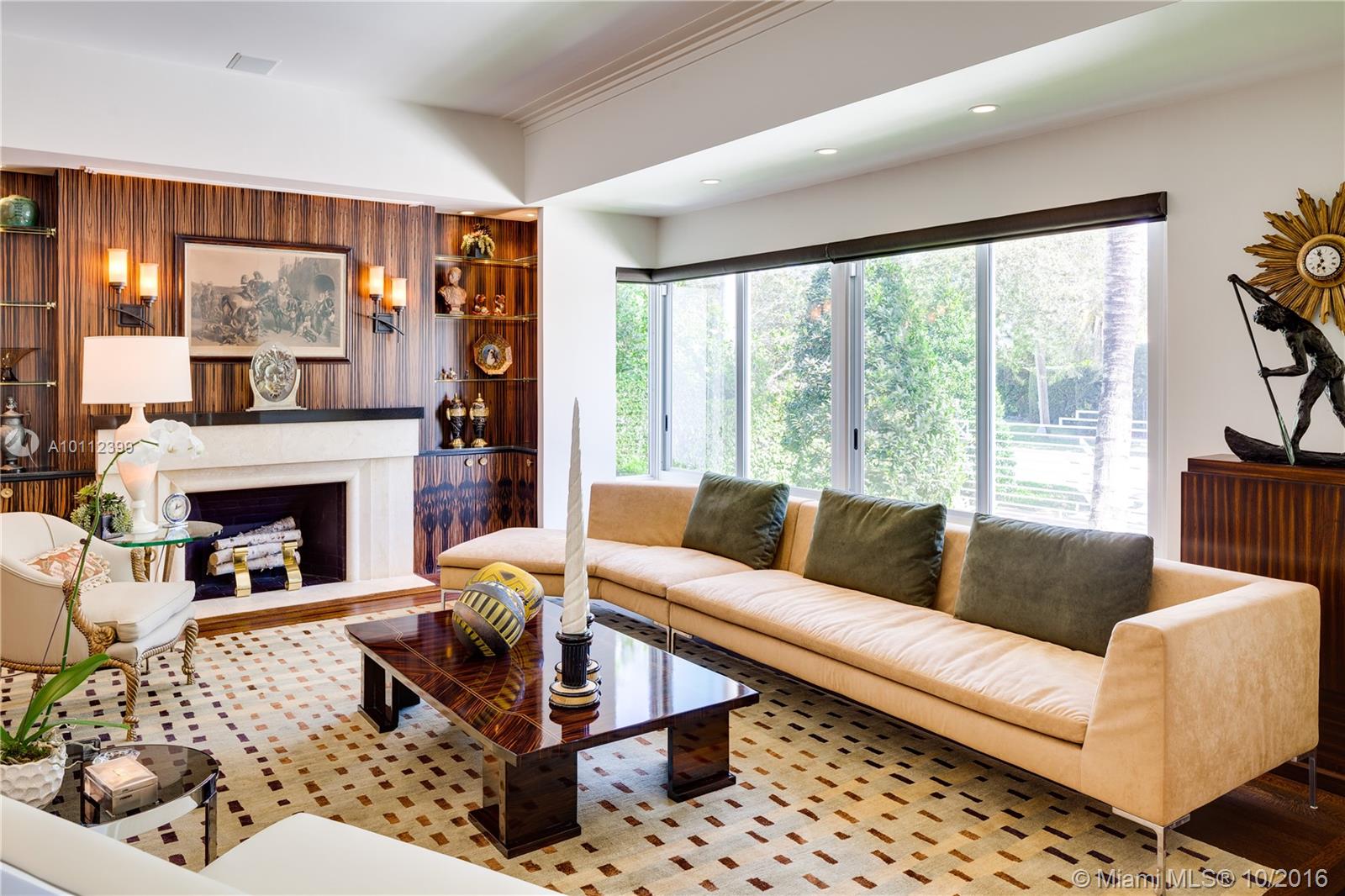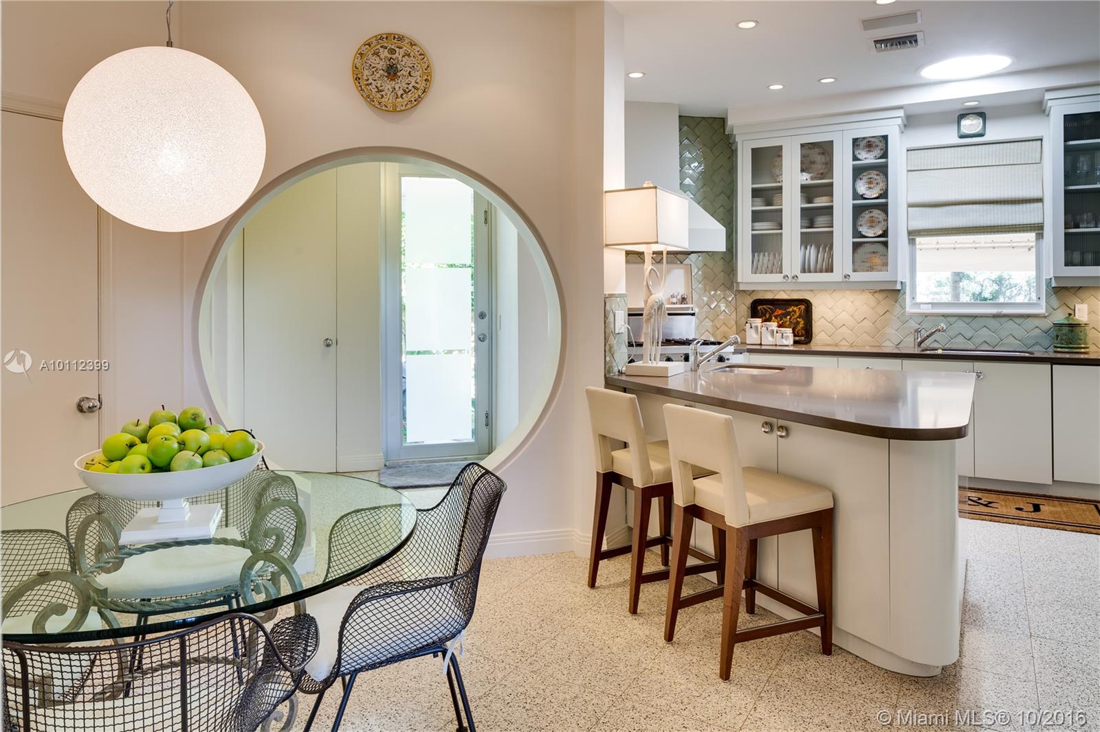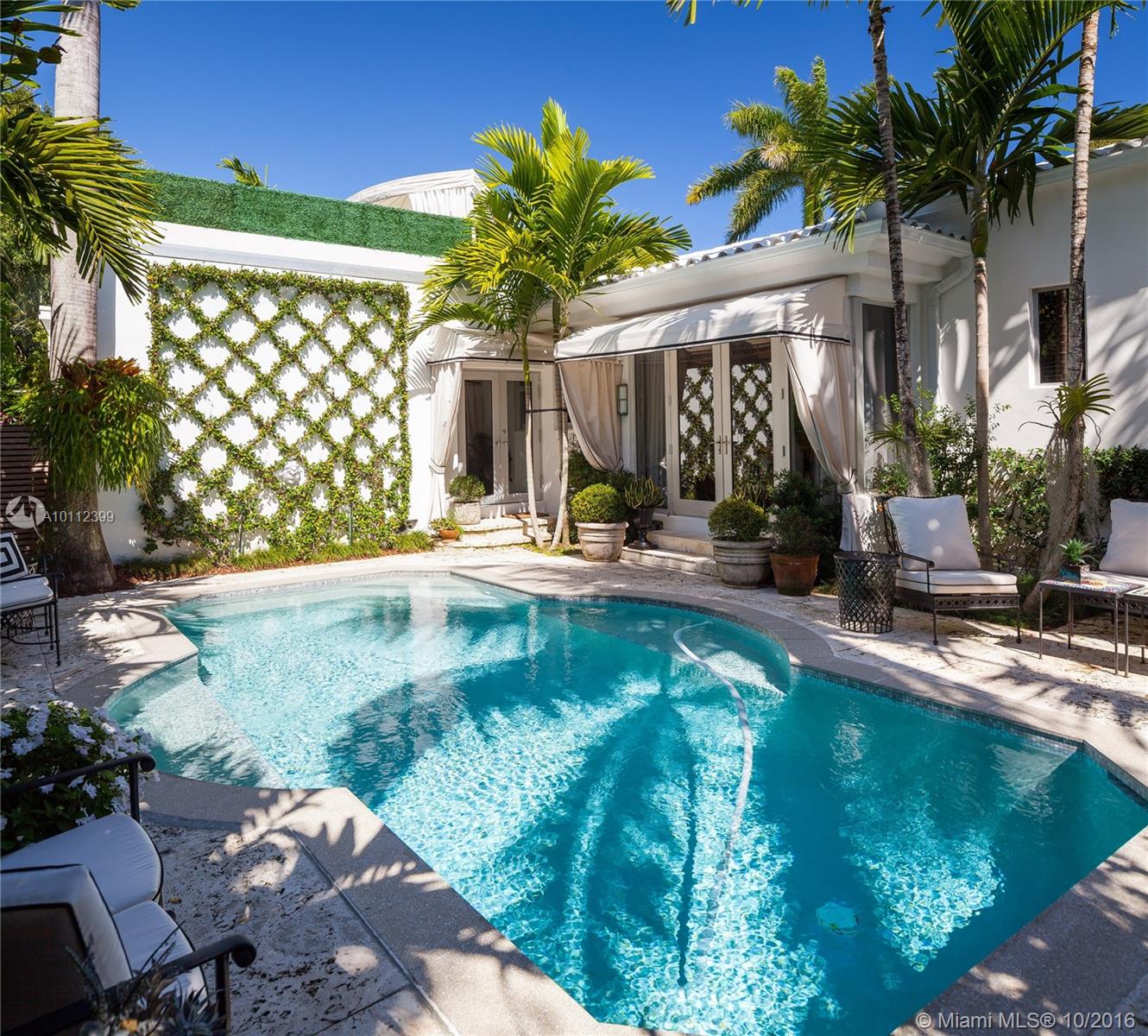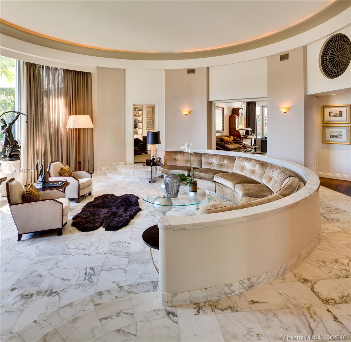 Absolutely beautiful art deco/mid century renovation by world renowned architect Anton Skitzowitz w/ the most value on Miami Beach, a MUST see. Interior features include volume ceilings throughout, a limestone fireplace w/ Macassar wood surround, hardwood floors, & a grand sunken rotunda with marble floors, 15' domed ceiling & cove lighting. Bedrooms are all en suite, master custom closet, & rosewood built-in cabinetry in middle bedroom. Windows & doors are impact. Gourmet kitchen has high end appliances.
