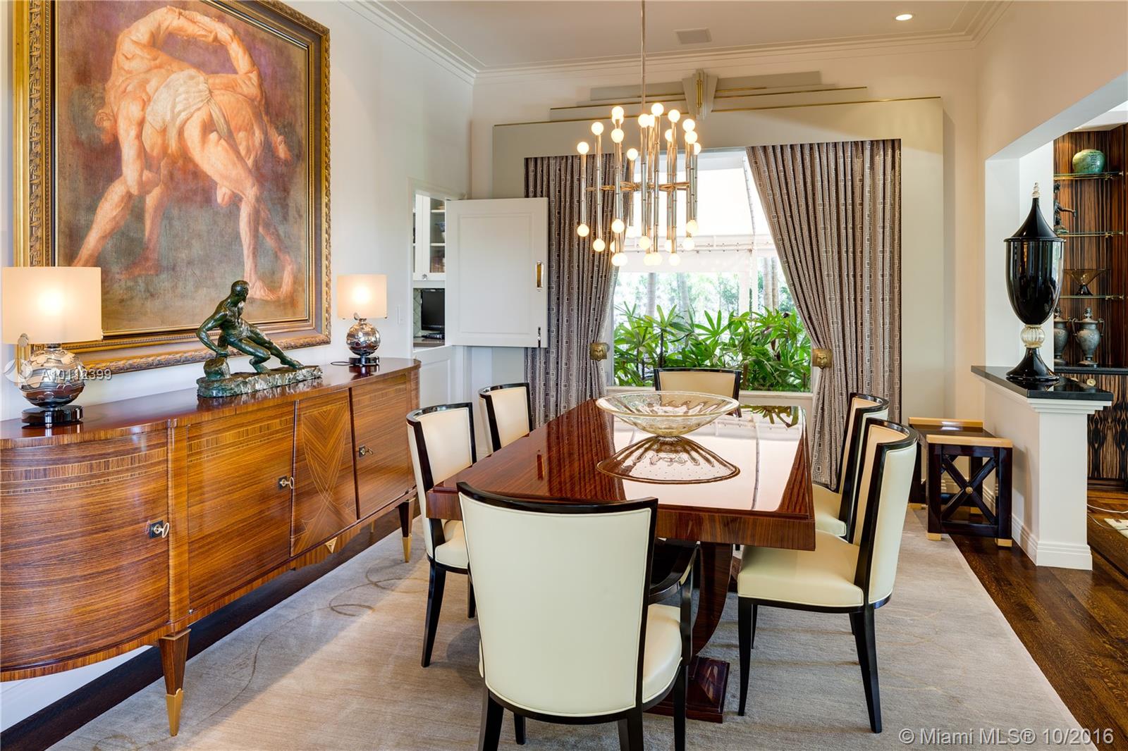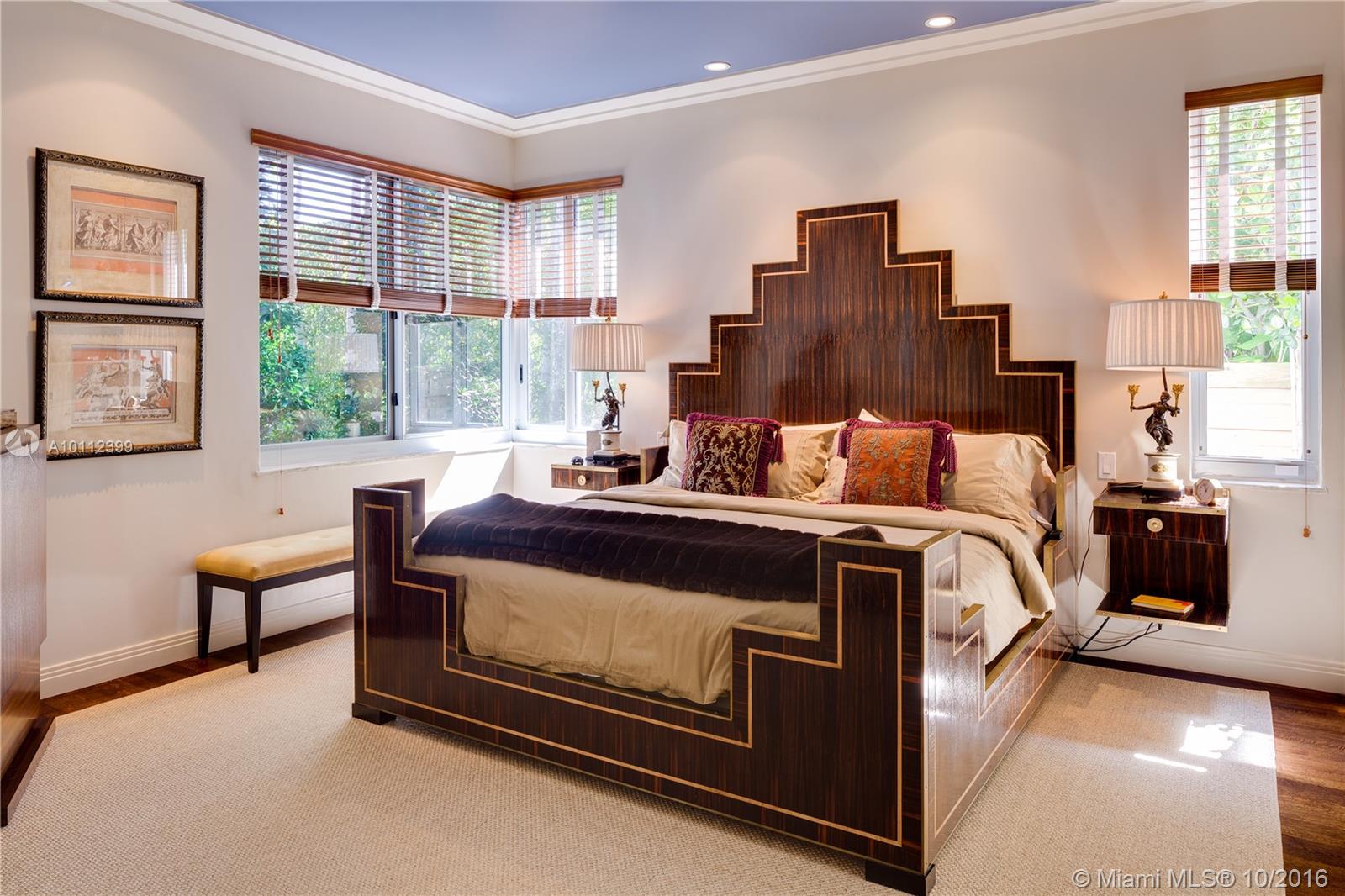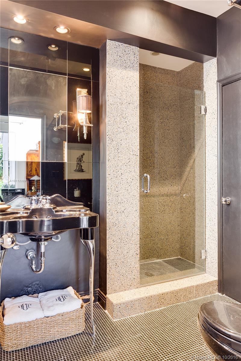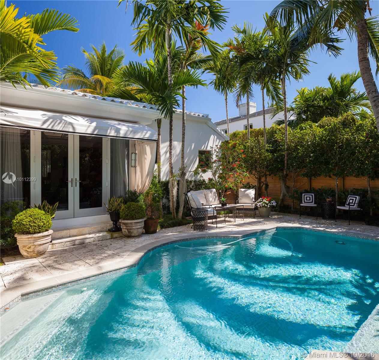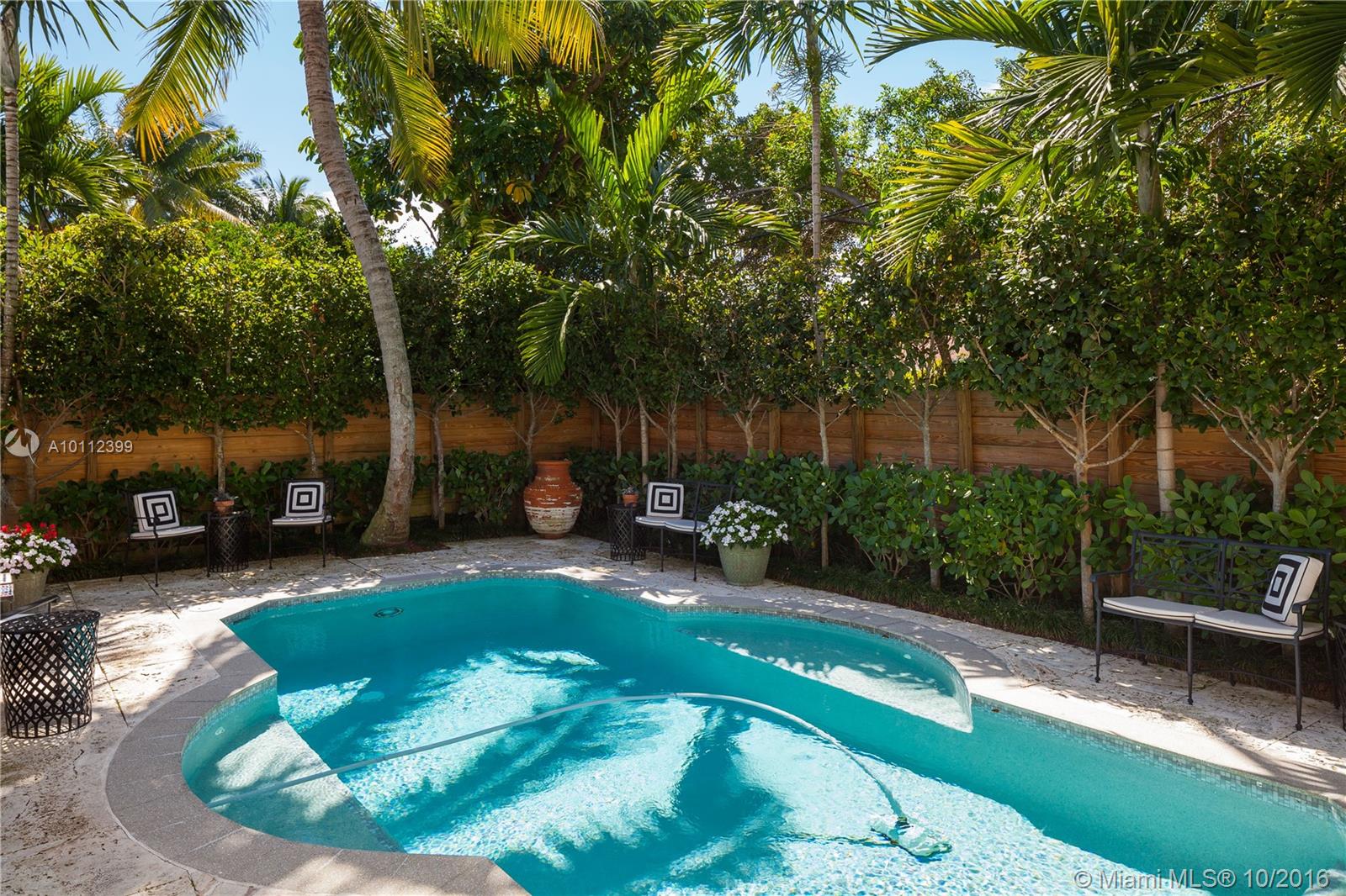 Absolutely beautiful art deco/mid century renovation by world renowned architect Anton Skitzowitz w/ the most value on Miami Beach, a MUST see. Interior features include volume ceilings throughout, a limestone fireplace w/ Macassar wood surround, hardwood floors, & a grand sunken rotunda with marble floors, 15' domed ceiling & cove lighting. Bedrooms are all en suite, master custom closet, & rosewood built-in cabinetry in middle bedroom. Windows & doors are impact. Gourmet kitchen has high end appliances.