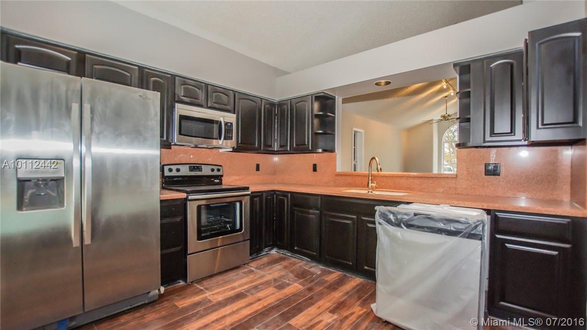 Wow! The most beautiful remodeled 4/2.5 @ Embassy Lakes w/ pool can now be yours! House has brand new wood flooring throughout! New Kitchen w/ Stainless steel appliances, black wood cabinets, + Quartz countertops w/ island! Bathrooms all remodeled w/ marble throughout + custom vanities w/ granite and modern bowl sinks! Master has large tub+ glass enclosed shower! Newer Roof! New washer+ Dryer! Amazing Large Backyard with covered large pool! House has been freshly painted! Community is guard gated! HURRY!