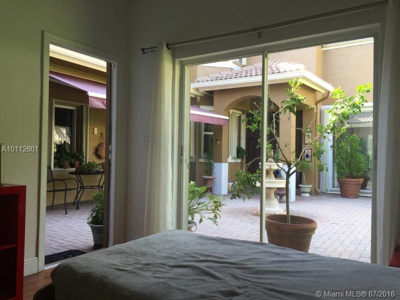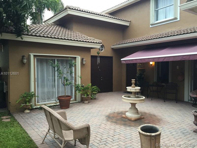This freshly painted beautiful courtyard home provides natural light throughout the home. Set in a quiet small neighborhood that is walking distance to a shopping center that can literally provide all your living needs. The reasonable association fee covers cable, home security, manned guard gate, lawn & irrigation service, swimming pool and exercise building. Feel secure in this home during hurricane season with easy close accordion style shutters and powerful full home generator.