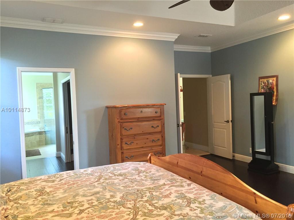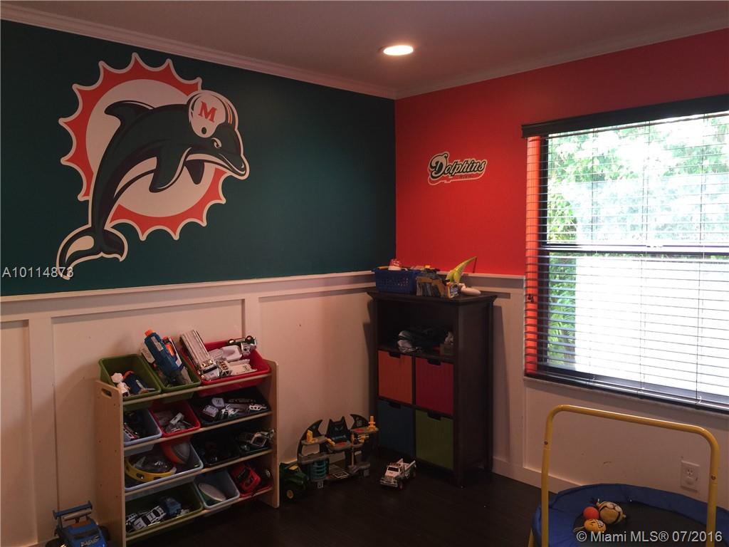 This ENTIRE home has been beautifully updated & is situated on a large pie shaped lot, located across from a tranquil park. Features: extra long 6 car driveway, marble and wood floors, 42" cabinets, granite in kitchen, silestone in every bathroom, Kitchen Aid stainless steel appliances, Miele dishwasher with custom cabinet cover, plantation shutters, accordion hurricane shutters, 5th bedroom/office has a custom Murphy bed, plenty of closet space in every room w/ custom built ins and shelves.