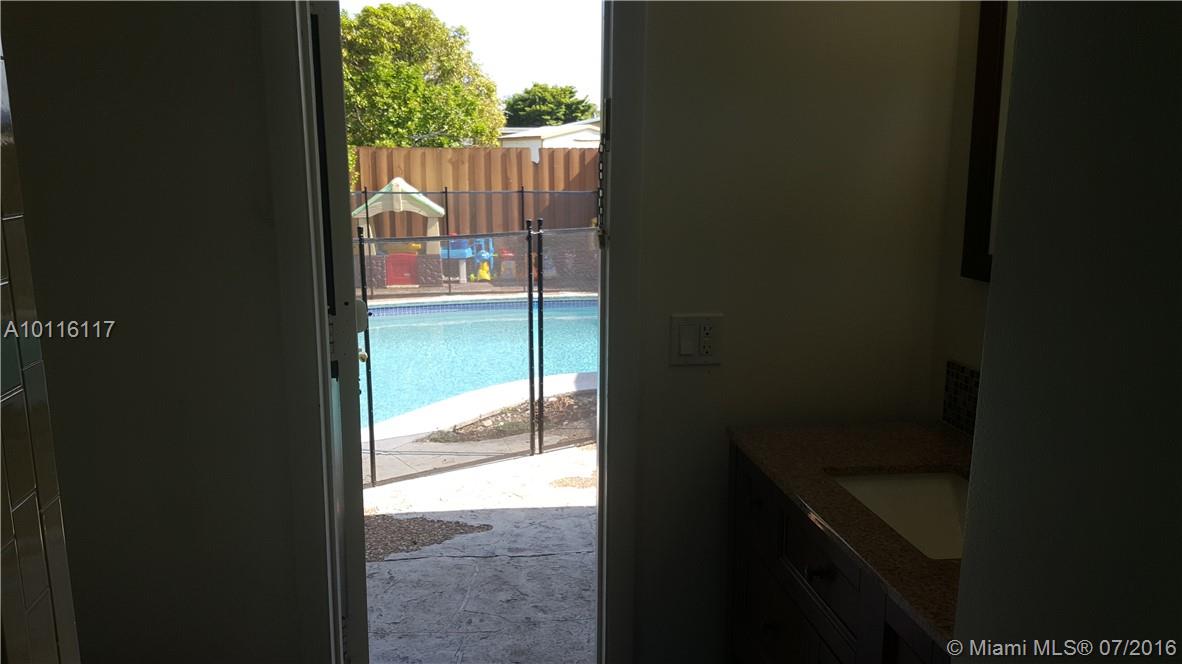 Lovely 3/2 Remodeled pool home w/ garage-Large master bedroom suite w/remodeled bathroom-2 additional nicely sized bedrooms-2nd bath doubles as a cabana bath leading to pool area–Remodeled open kitchen has upgraded long cabinets w/ crown molding details-Large built in pantry–also featuring granite counter tops & a granite snack/bar area- Stainless steel appliances–Access door leading from kitchen to laundry area & garage-Dining/Living/Family area can be switched around to better fit your lifestyle.
