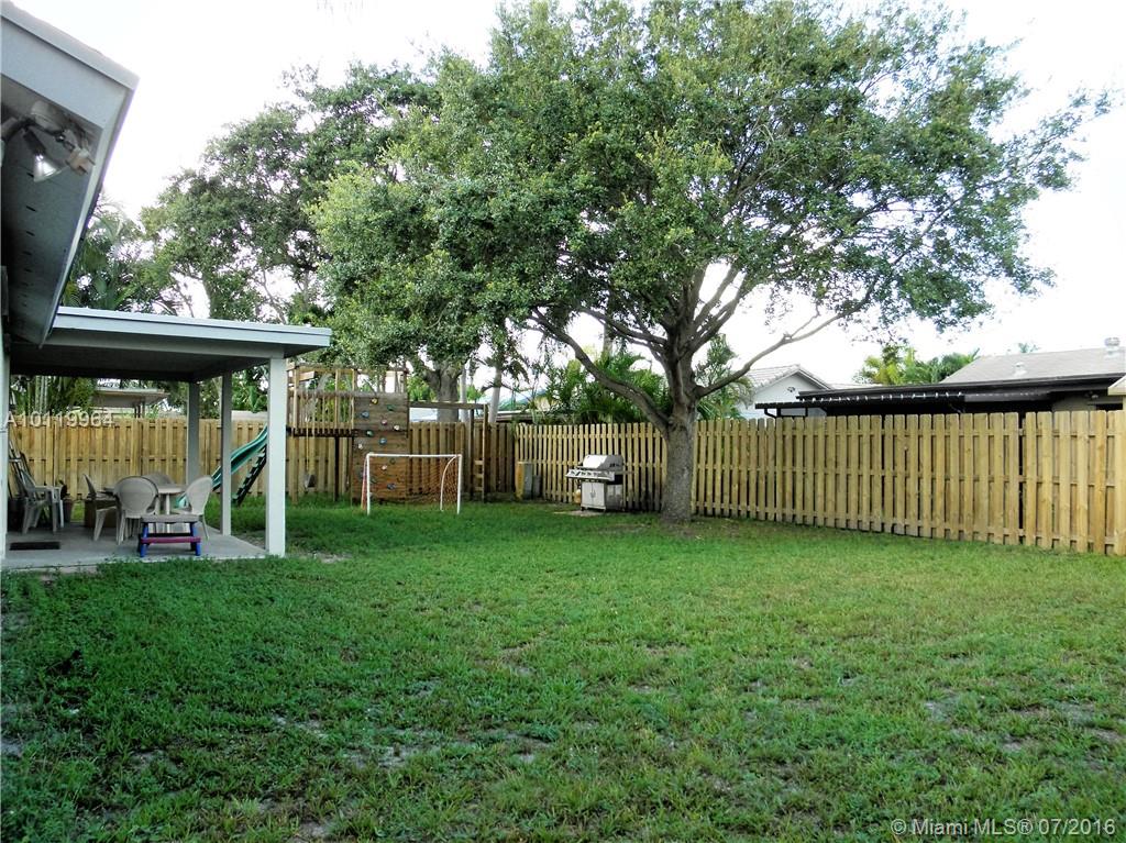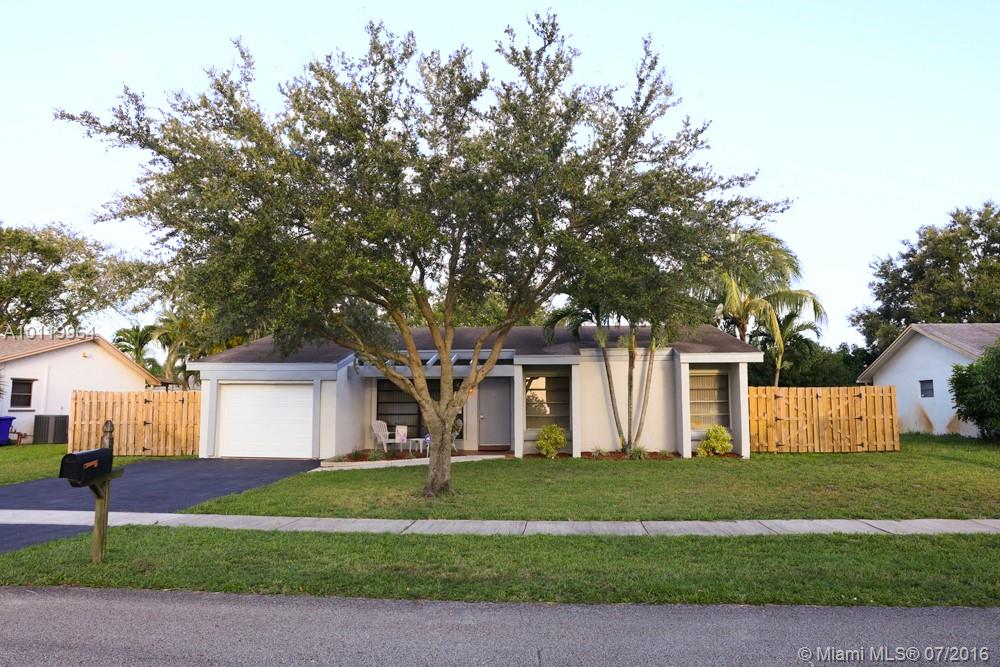You will love this great starter home in Pembroke Pines with No Homeowners Association!, beautiful 3 bedrooms 2 baths, lots of natural light, freshly painted in and out. laminate wood flooring and tile throughout the house. 1 car garage with new garage door and electric opener, on a large fenced lot with room for a swimming pool, covered back porch, playground, eat-in kitchen, newer air conditioning dishwasher and dryer, bathrooms recently updated, close to shopping area, schools, highways and much more!!