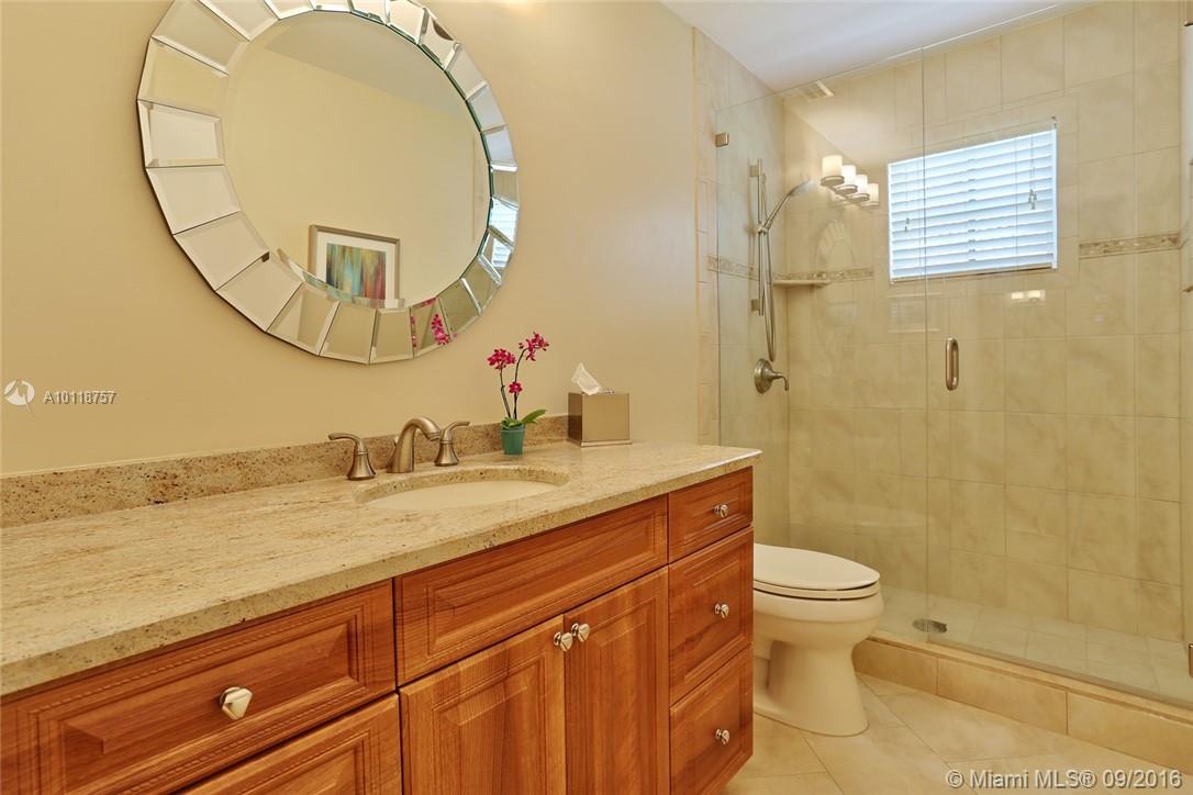 4BR/2.5BA, fenced yard, brick paver patio, heated saline chlorinated pool/spa. Remodeled and expanded kitchen with 42” wood cabinets, under-cabinet lighting, granite counters, stainless steel appliances and pull-out drawers. Totally renovated Master Bathroom, hall bathroom & powder room w. wood cabinets, under-mounted sinks, free-standing tub & porcelain flooring. Real wood floors in living area & bedrooms, porcelain tile in kitchen & bathrooms. Elegant Plantation shutters & accordion hurricane shutters..