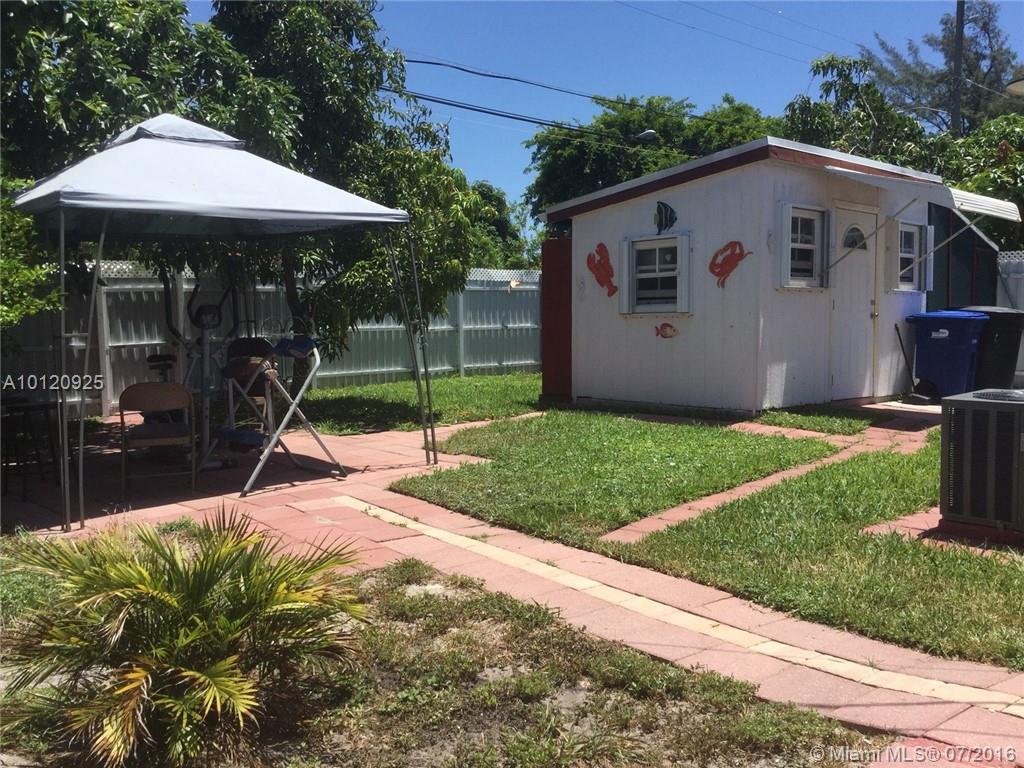 Lovely home on a quiet street with nice curb appeal, Move in condition. 3 Bedroom 2 Full Bath. Living room, Formal Dining room, and nice updated Kitchen. Covered front porch and entrance has metal fence and gate with stamped concrete driveway. Newer windows & Accordion shutters. Newer AC. Fenced back yard with Fruit trees and large full sized shed + Alley way area for exercising. Newer Electric panel, Sprinkler system & newer Drain field. Close to Aventura Mall and short drive to the beach.