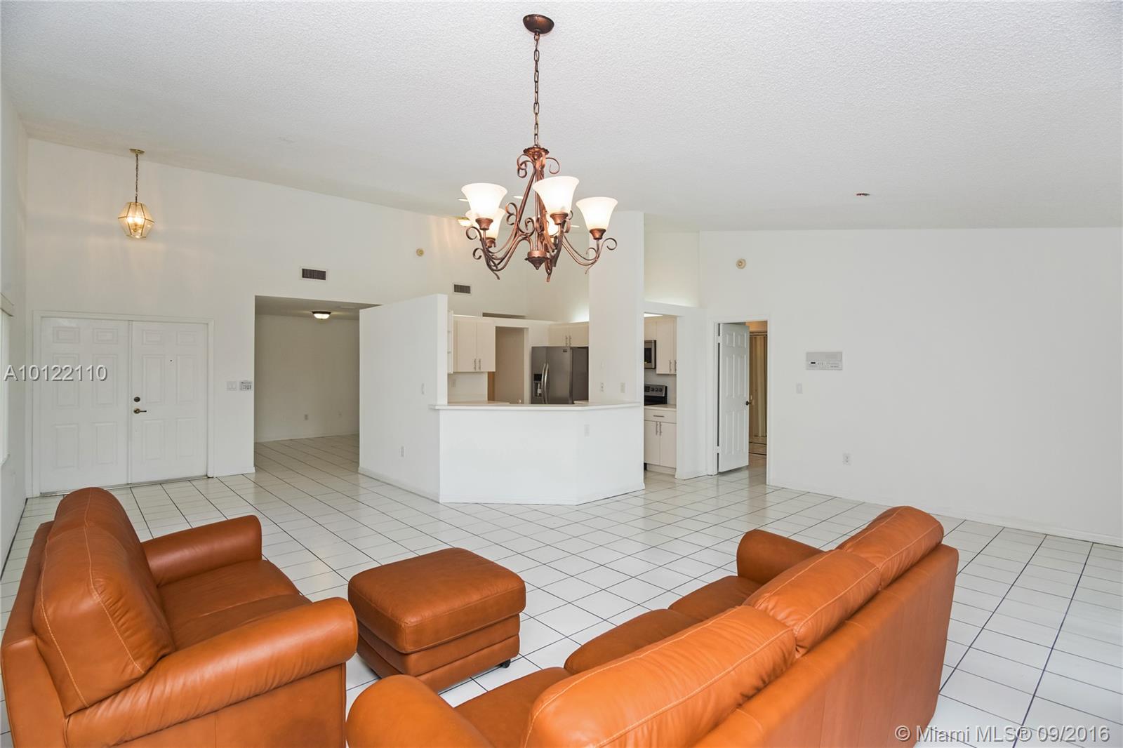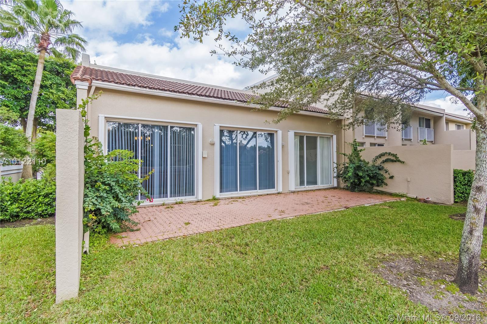 Beautiful & spacious corner 1-story Townhouse with lots of natural light throughout. Fully tiled, brand new stainless steel kitchen appliances and lovely white cabinetry kitchen. Large Master bedrooms with walk-in-closets and spacious Master Bath with soaking tub, bidet and separate shower stall. 3rd bedroom closed in for privacy. Great private courtyard with patio brick pavers perfect for entertaining. Centrally located in sought after Doral Park Country Club area. Great community with endless amenities.