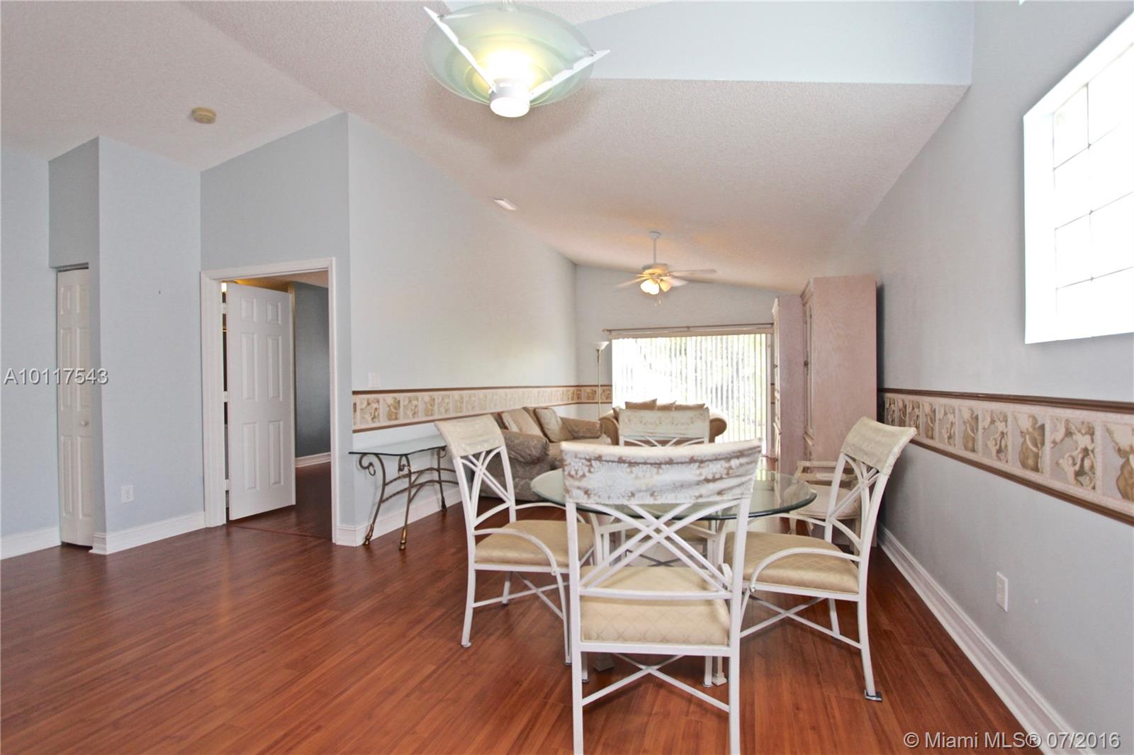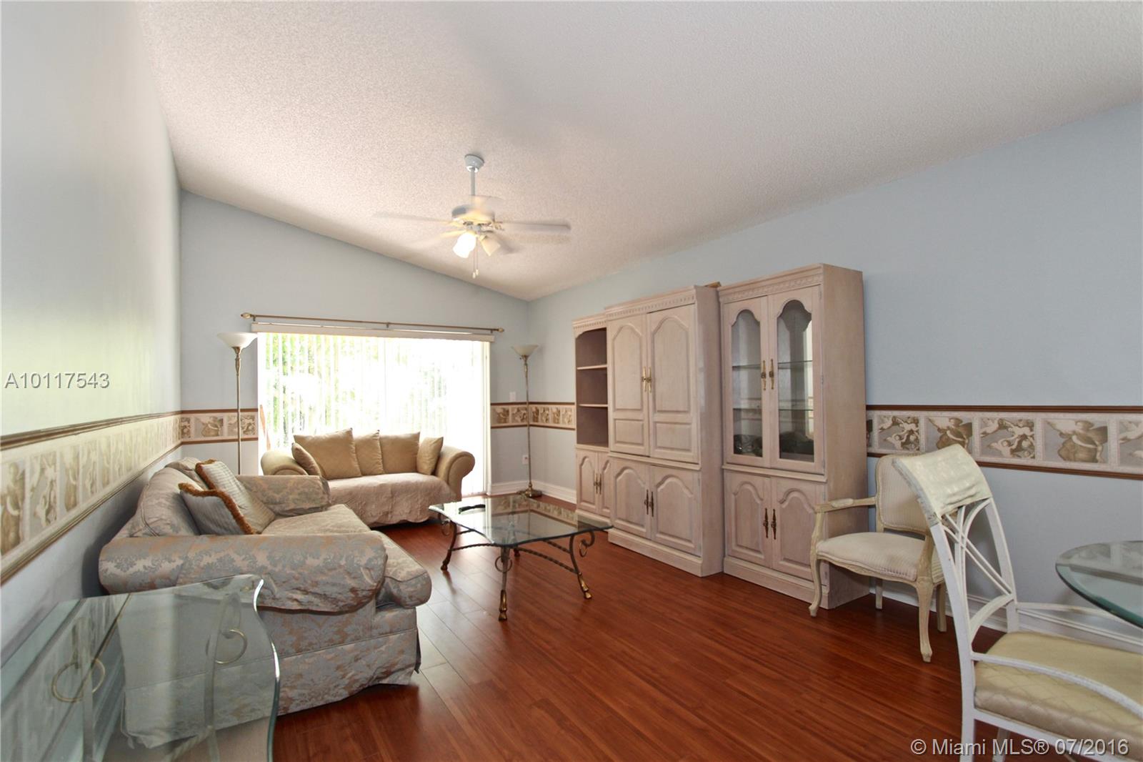 A METICULOUS GEM! So well kept in top condition. Spacious kitchen opens up to living area. Ideal floor plan. Yard large enough for kid play, dogs, BBQ-ing, and more. Laminate Floors. Large walk in closet, Master Bathroom with his/hers sinks, beautiful decorative mirrors, with tub and stand up shower. Association fee covers lawn care, sprinklers, basic cable, alarm security, club house, gym. Seller is highly motivated and ready to make a deal, don't hesitate to send your offer!