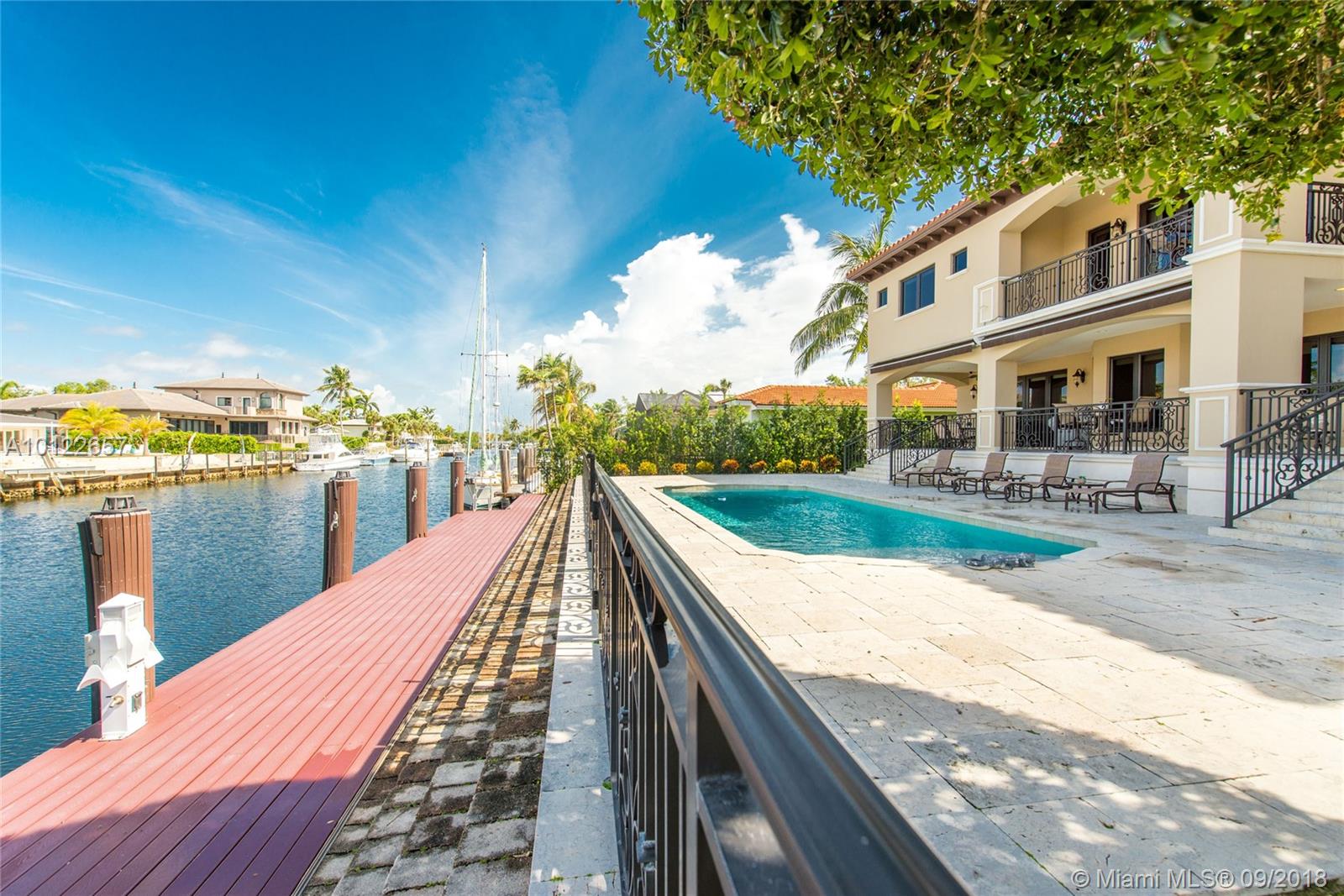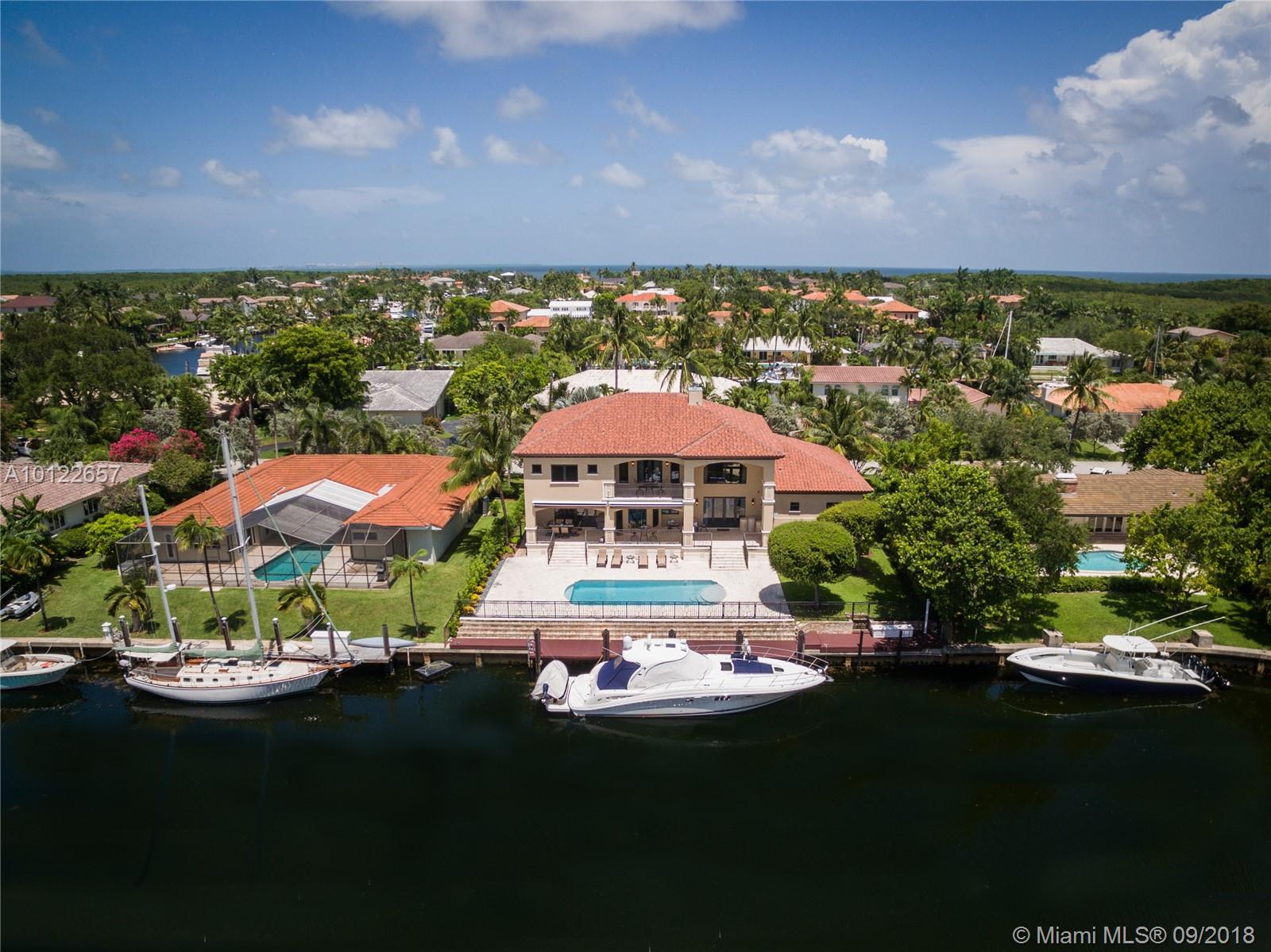 New Price! Tremendous waterfront value & exceptional home in gated Gables by the Sea. Built in 2008, 5BR/ 5BA, offers elegance, craftsman-styled designs, & 100 ft. dock w/ direct ocean access. No bridges to bay! Indoor/outdoor design features spacious light-filled living areas, soaring volume ceilings, impact windows/drs, & water vistas thru-out. The best of the best finishings w/ custom millwork, natural stones, & Brazilian teak wood. Enjoy a large covered patio overlooking beach entry pool & waterway. 2 CG.