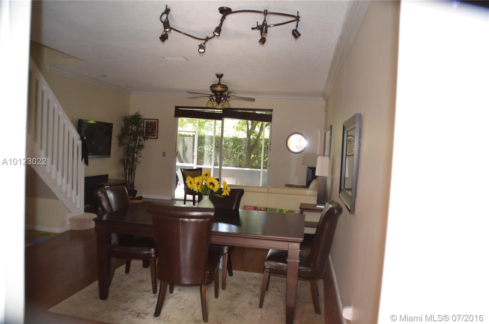 WONDERFULLY UPDATED TOWNHOME LOCATED IN ONE OF THE TOP SCHOOL DISTRICTS IN SOUTH FLORIDA. CLOSE TO THE POOL/PARK/EXIT. KITCHEN HAS GRANITE COUNTERS, UPDATED CABINETS, AND BRAND NEW, STAINLESS STEEL APPLIANCES. NEW WATER HEATER. BATHROOMS HAVE BEEN UPDATED. DOWNSTAIRS HAS LAMINATE FLOORING & CROWN MOLDINGS THROUGHOUT. EPOXY FLOOR IN GARAGE, ACCORDION SHUTTERS AND TILED, SCREENED-IN PATIO. MASTER BEDROOM WITH UPGRADED DUAL CLOSETS. LOCATED CONVENIENTLY NEAR SHOPPING, RESTAURANTS WITH EASY ACCESS TO HIGHWAY