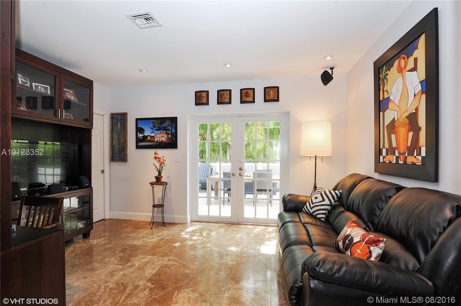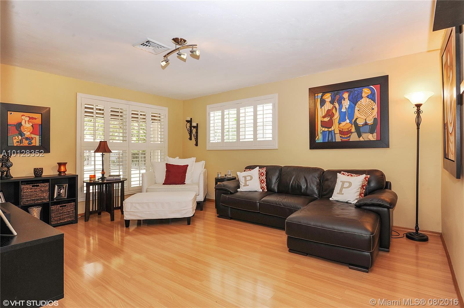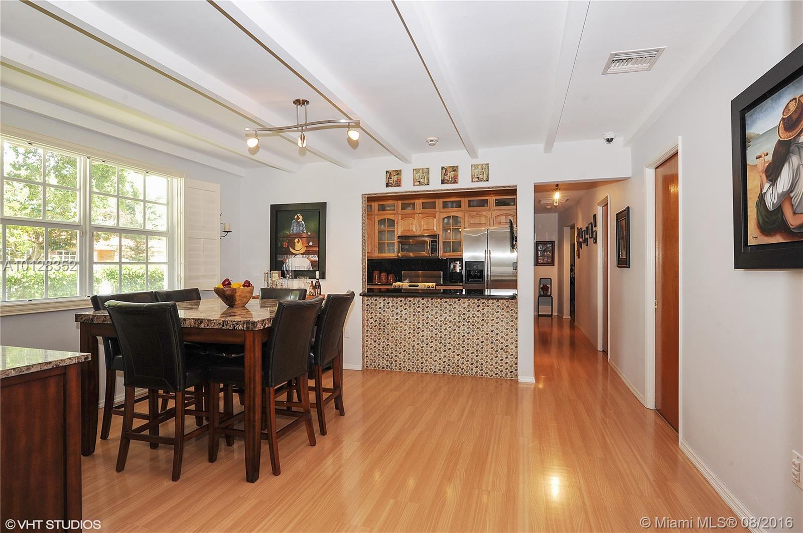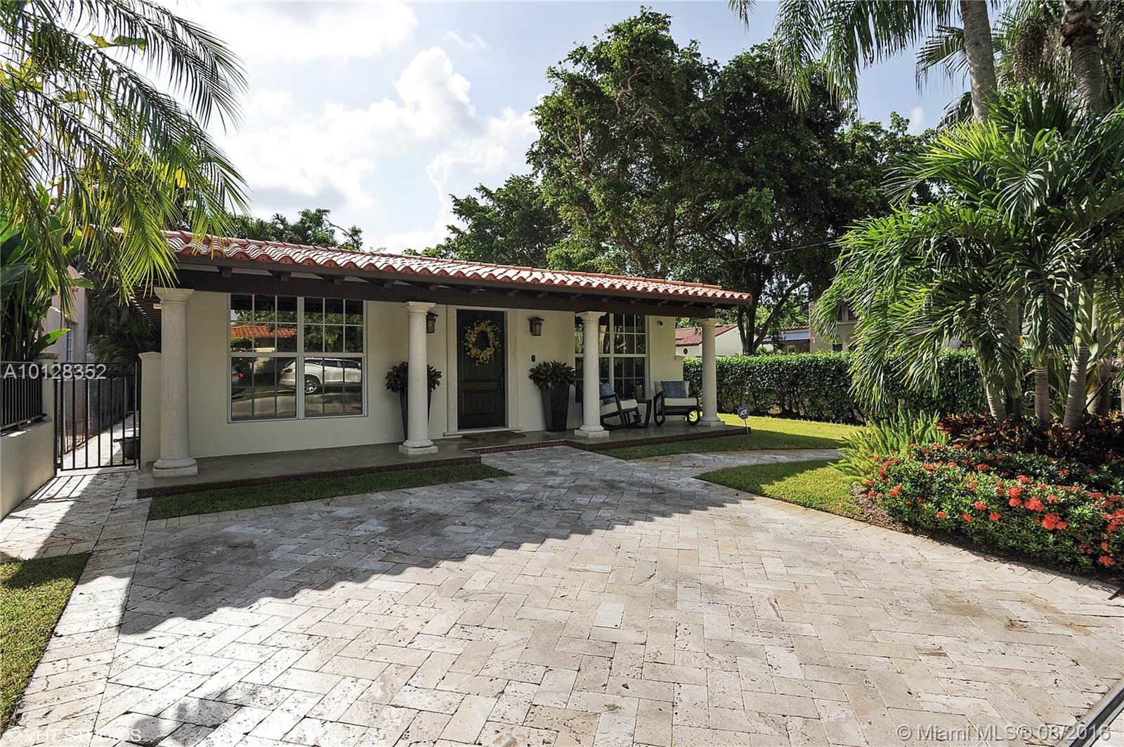 Turn-key 3br/2ba beauty on corner lot in Coral Gables. Manicured landscaping and privacy wall create tranquil surroundings. Formal living plus open kitchen, dining and family room offer a great floorplan for entertaining. Home features impact windows & doors, plantation shutters, security camera system w/dvr, updated kitchen w/ Viking 6 bottle wine cellar & stainless steel appliances, master bath w/ double sinks, energy efficient a/c, spacious laundry room. Sq Ft living area as per appraiser.