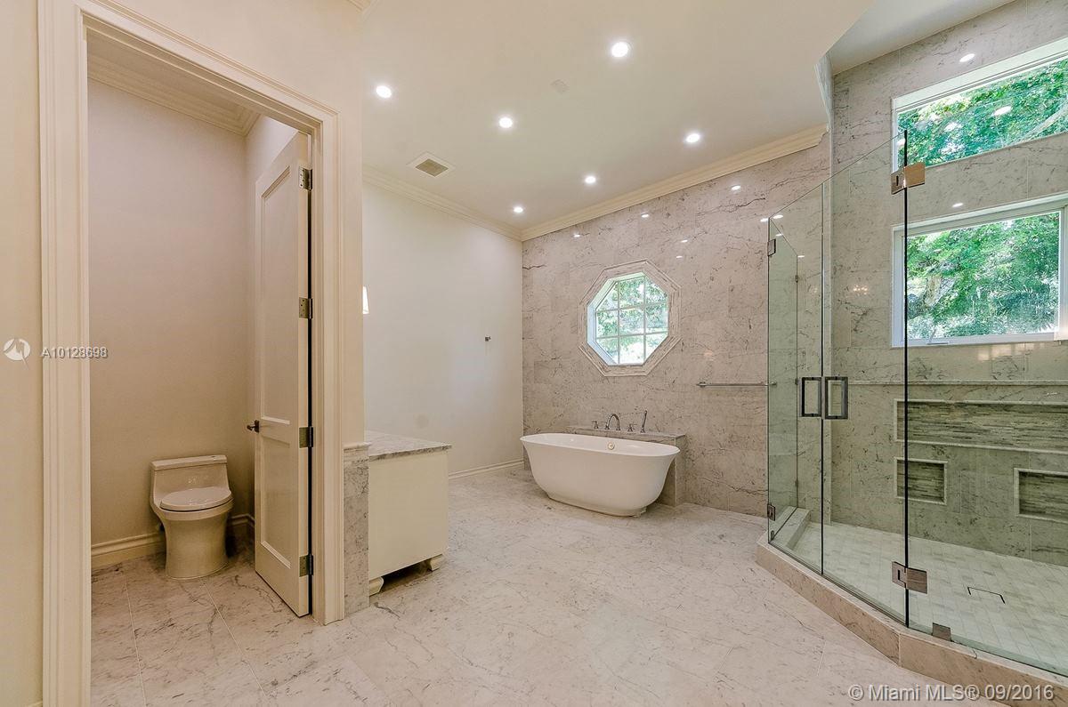 Brand new oasis in heart of Coral Gables. Enjoy quiet, private feel of tree lined limited avenue, steps to Historic Biltmore Golf Course.This 5400 sf, 5 Bed, 5 Bath, 2 Car Gar combines best of modern technology with beautifully detailed Mediterranean style of Gables architecture. All marble and 8 in. wide French Oak floors, 13 ft ceilings, Gourmet Kit and breakfast area. Formal Dining Rm, Living Rm with Quartz Stone Fireplace. Fam Rm, Summer Kit, Covered patio & pool, Impact Windows. See detail sheet.