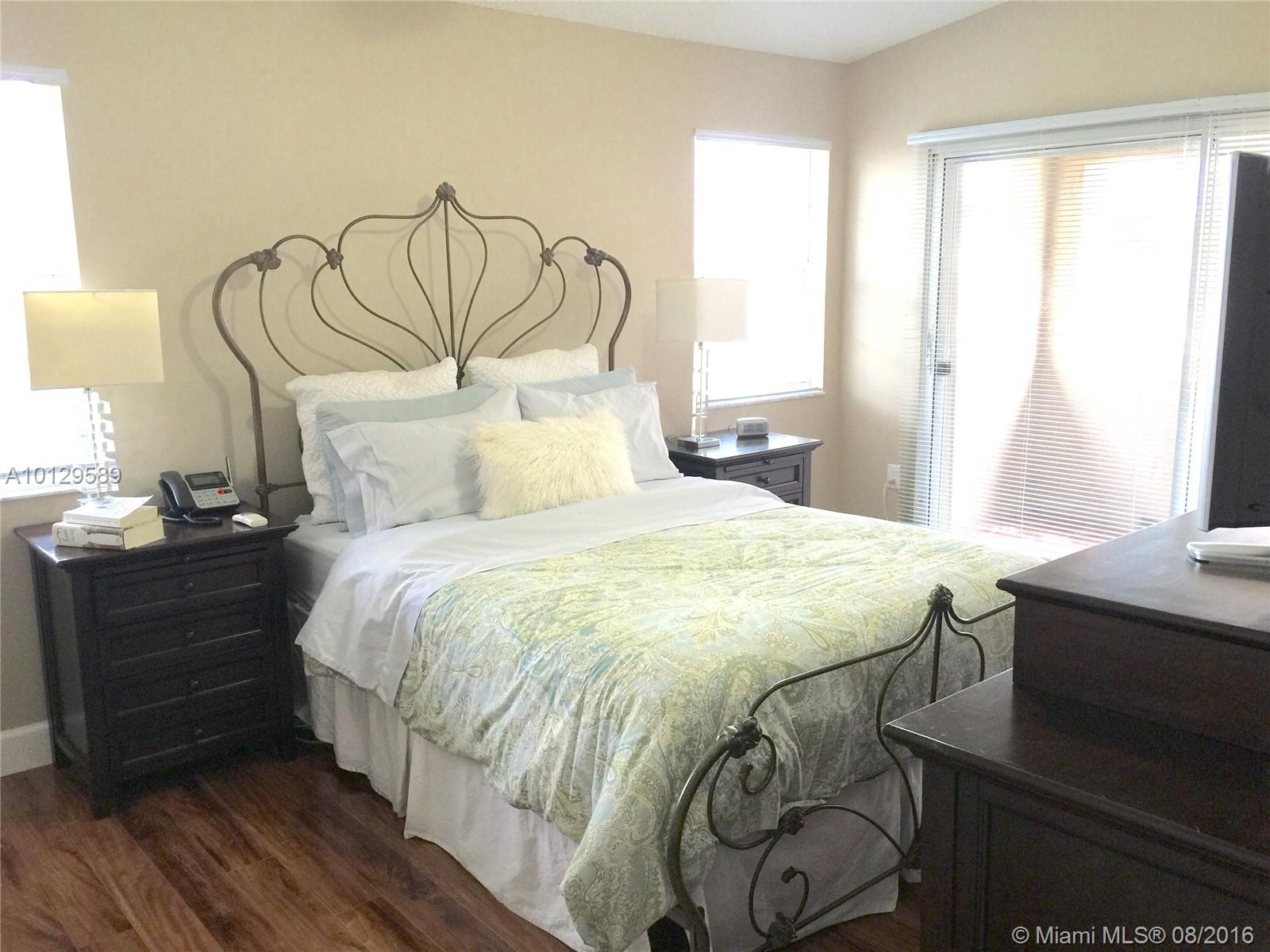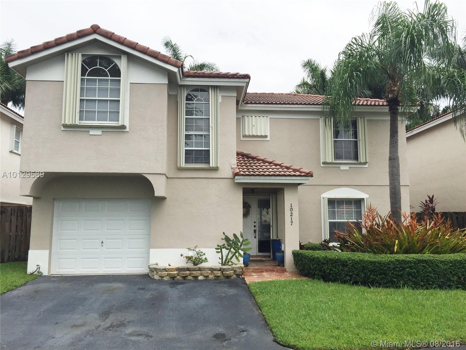 This beautifully renovated home in Doral Palms is a must see! Private patio/backyard has a larger lot than the average lot for the community,offering a great area for entertainment . True pride of ownership is evident throughout this two story home. This property features a renovated kitchen & bathrooms, laminate and porcelain floors and a Brazilian cherry wood staircase. Major ticket items have been replaced -Roof, A/C & garage door. As a resident you will enjoy all facilities at Doral Park Country Club!