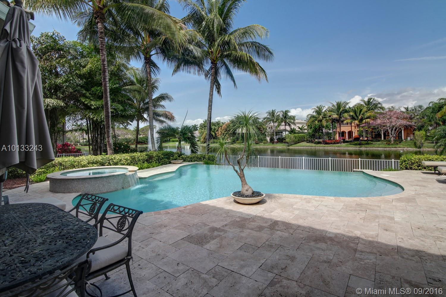 State of the art two story home located on a private waterfront cul-de-sac lot in the prestigious gated community Hawks Landing. This former model home has only been used as a second home and it looks brand new! 6 bedrooms, 6 1/2 bathrooms, a library, a chef's kitchen and an upstairs living room/loft area. Imported marble, exotic hardwoods and hurricane impact glass. Every room will astonish you with its unique touches. A vanishing edge pool and spa overlooks a water view. Must see!