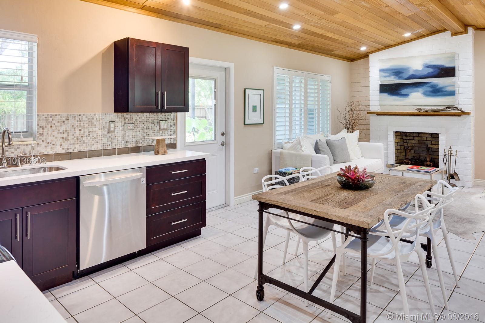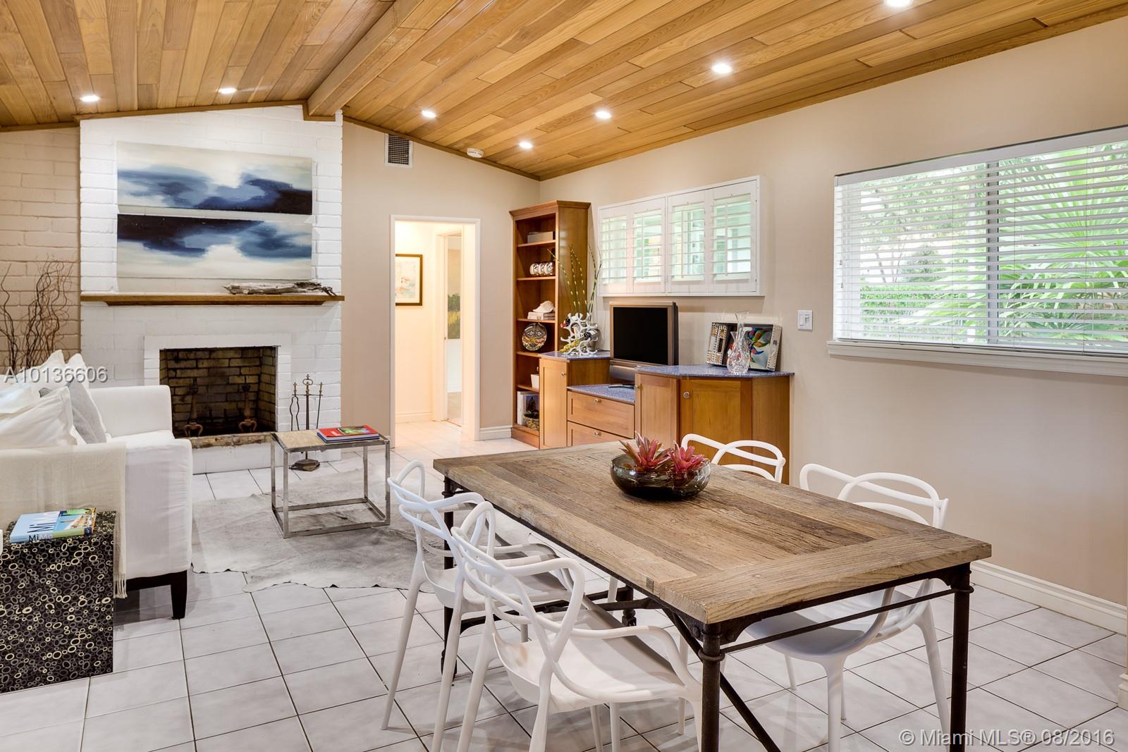 Welcome to Pinecrest comfort with Coconut Grove appeal. Come inside to find a tranquil home exuding warmth & style with a fresh, chic vibe. Vaulted wood ceilings, brick frplc & a brand new upscale kitchen set the tone for todays casual but stylish lifestyle. Sitting on a lush, gated, corner lot & surrounded by exotic foliage, highlighted w/landscape lighting, this home sparkles, day or night. Covered terraces & meditation areas add to the allure of this very special space to call home