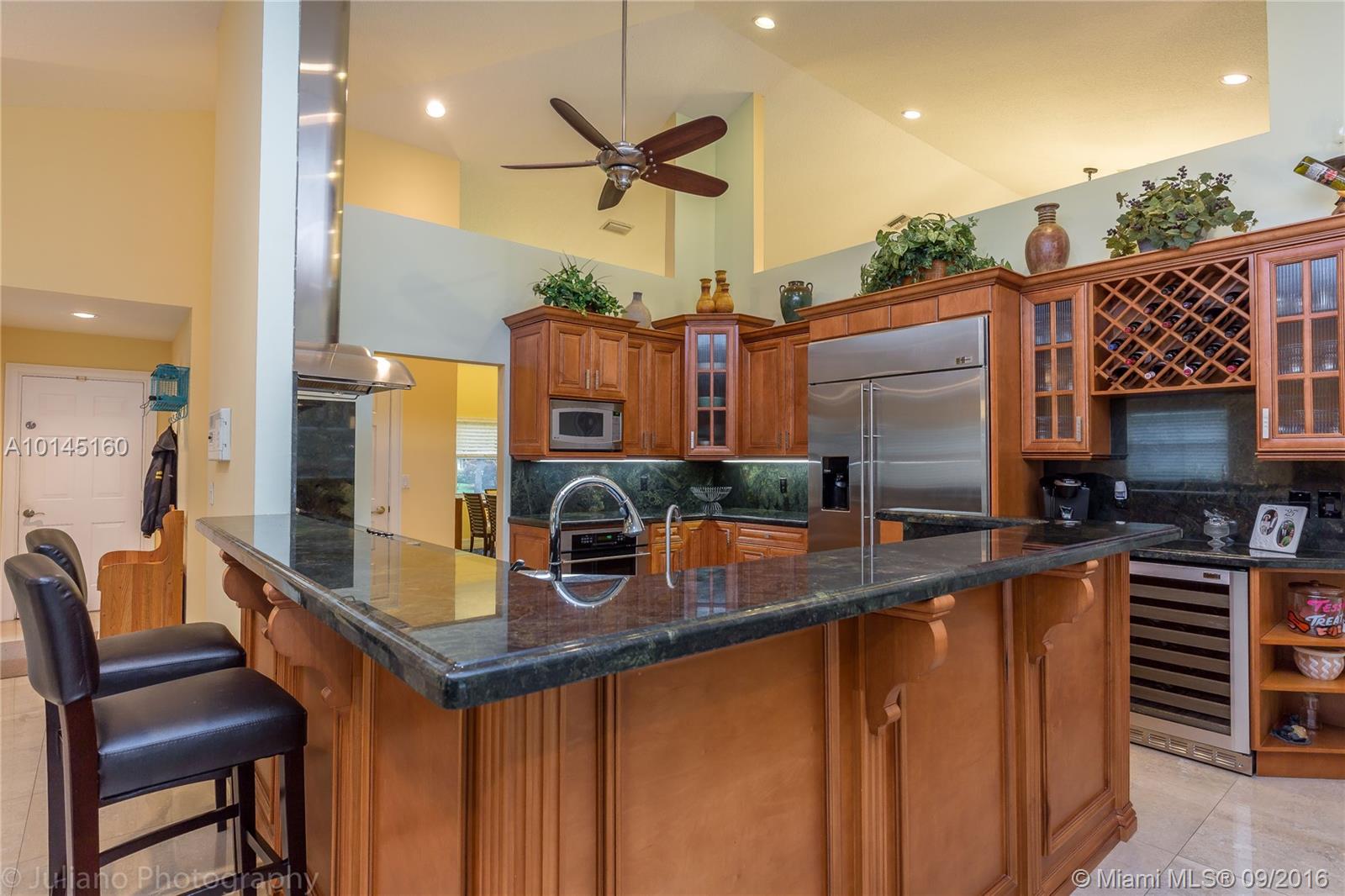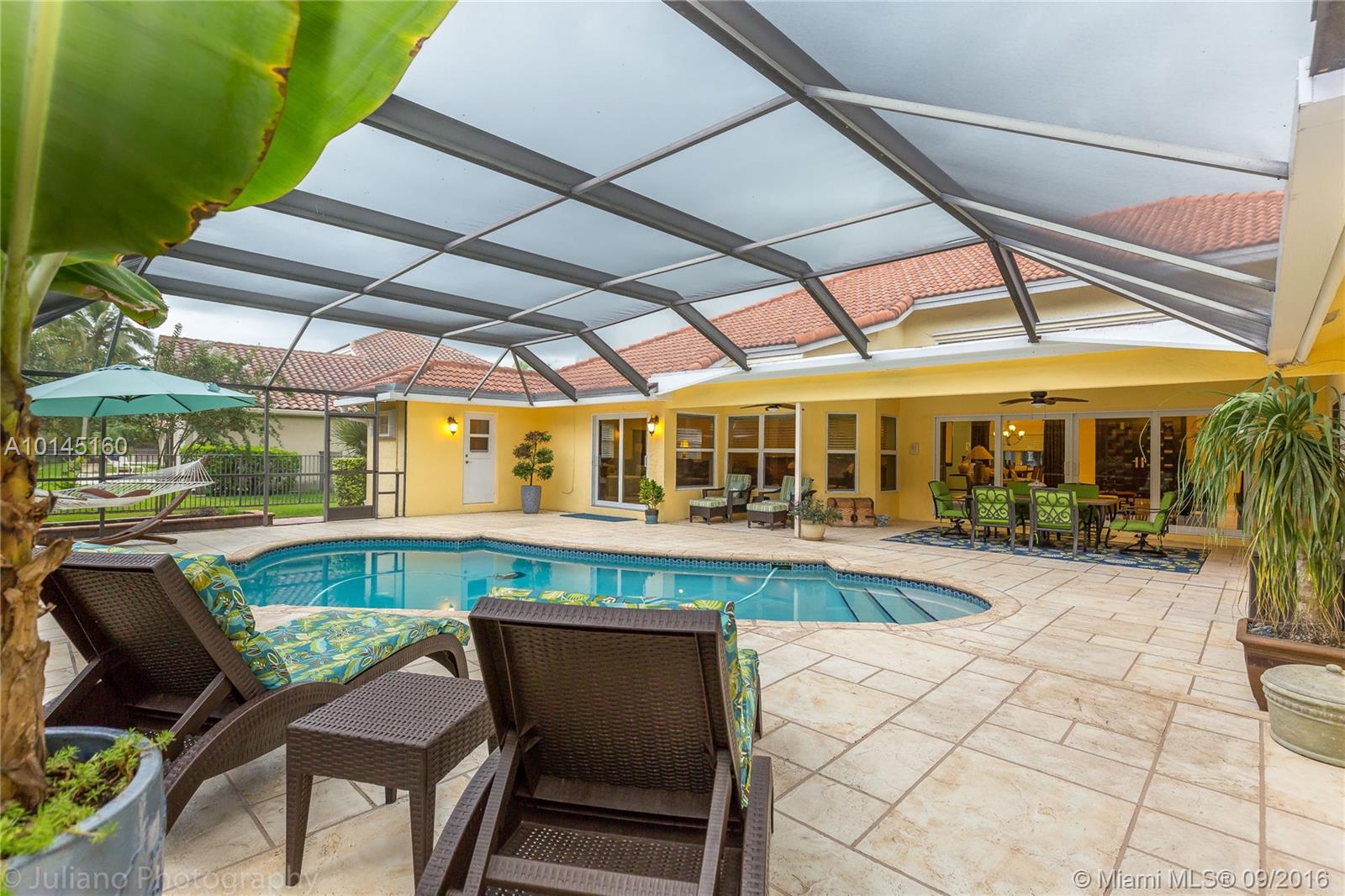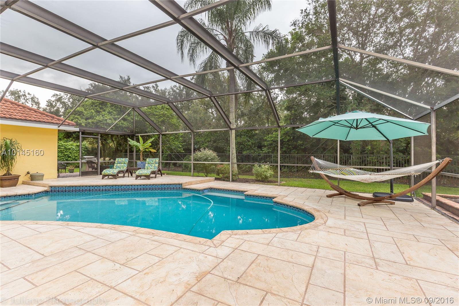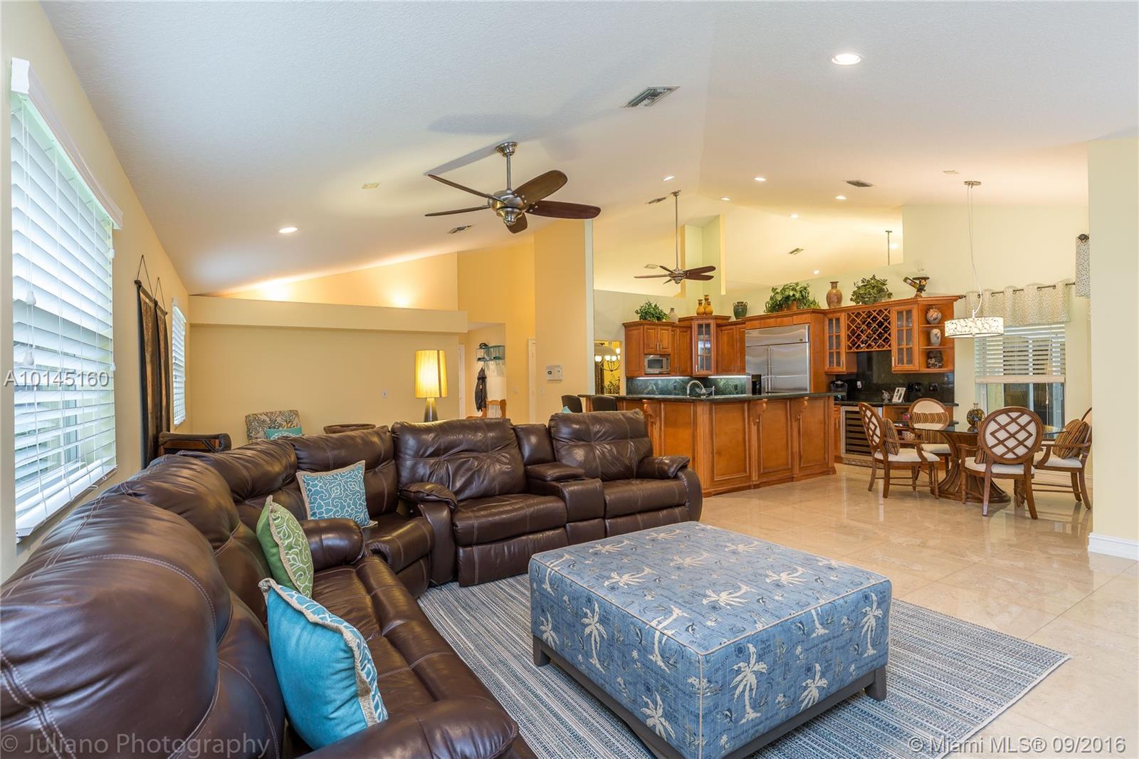 Gorgeous move in ready 4/3 pool home with over 3300 square feet of living area! Open and bright floor plan. ROOF is seven years old, Hurricane IMPACT windows, rectified porcelain tiles in main living area and bedrooms. Every bedroom size is larger than standard size with an extra large family room. Custom designed kitchen is updated with granite counters, stainless steel appliances and wine cooler. Updated bathrooms. House sits on private oversize lot of 14,768 sq. feet! Two recent A/C units. Must see!