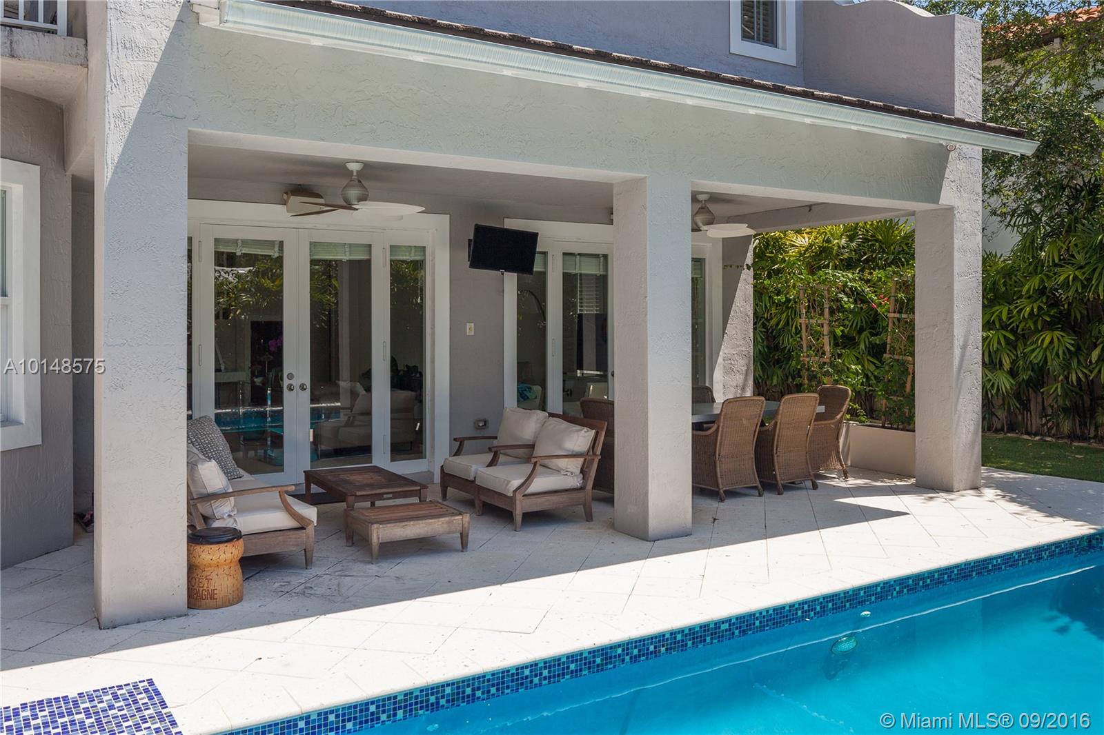 Coveted location next to Merrie Christmas Park in S. Coconut Grove is a stunning 5 bed/4 bath, magazine quality home on quiet tree lined street. Features limestone & Brazilian cherry wood floors, impact windows, 11' tray ceilings, custom cabinetry, & double crown moldings, gourmet kitchen w/professional quality appliances, heated pool and spa, laundry room, maid's quarters and garage. This spacious and sun filled home was designed w/family living & great entertaining in mind.