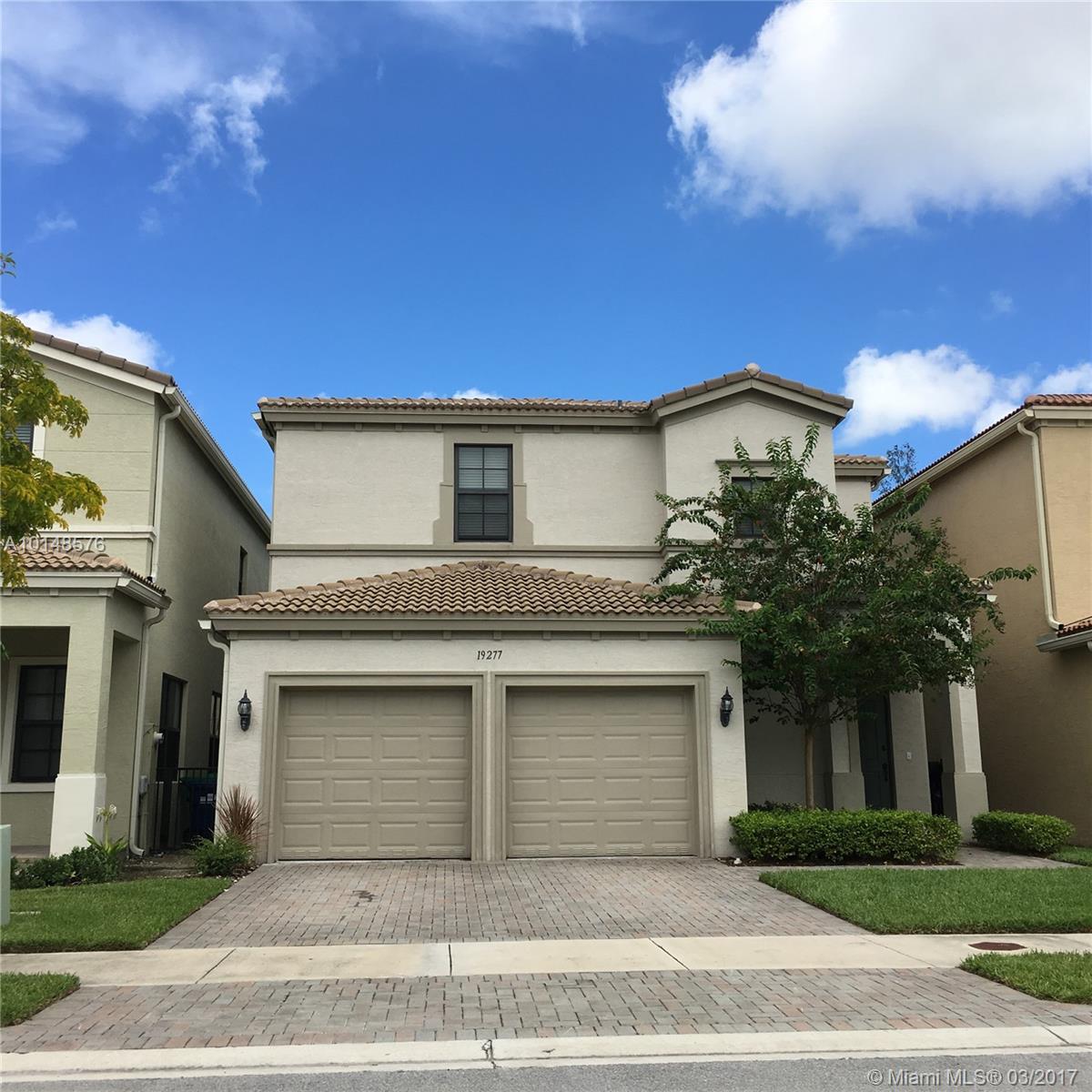Newly constructed in 2013, this highly desired Sapphire model is ready for its new owner - YOU! Located in the beautiful Mediterranean inspired community of Adventura Isles, this 2-story home has been freshly painted & features white kitchen w/S/S appliances & granite counter tops. Wood floors through-out and open floor plan flows to open patio w/view of expansive green space. Pavered driveway/2 car garage. Grand gated entry & elegant common areas w/sidewalks through-out w/community pool/walking trails.