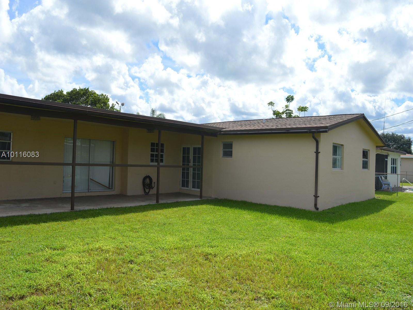 VERY SPACIOUS 4B/2B ONE STORY HOME IN SUNRISE GOLF VILLAGE. THIS HOME FEATURES A CIRCULAR DRIVEWAY, TILED LIVING AREA, BEAUTIFULLY UPGRADED KITCHEN CABINETS WITH GRANITE COUNTER TOPS AND MODERN BACK SPLASH, STAINLESS STEEL APPLIANCES, LARGE MASTER BEDROOM, GREAT 2 CAR GARAGE. NEWER A/C & H2O HEATER, COVERED PATIO LEADS TO THE A HUGE FENCED IN BACK YARD. PLENTY OF ROOM FOR A POOL. FRESHLY PAINTED INTERIOR AND EXTERIOR. ELEMENTARY AND MIDDLE SCHOOL JUST A FEW STEPS AWAY. EASY TO SHOW. QUICK CLOSING.
