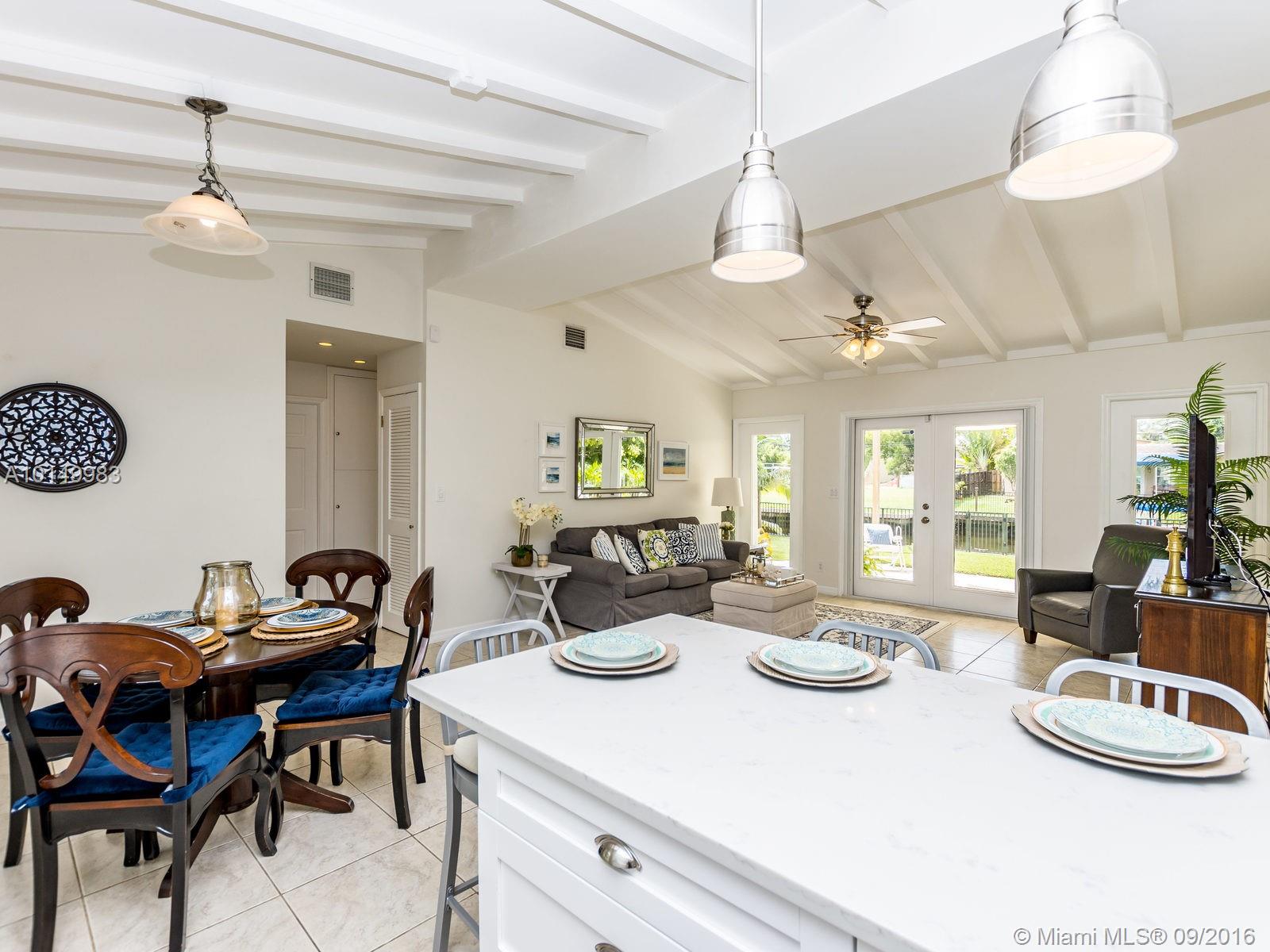 This home features soaring open beam ceilings, wall to wall windows that allow for plenty of natural light to flow throughout this airy layout. Remolded kitchen, premium finishes and fixtures including custom wood cabinets, pantries, Quartz countertops, peninsula with seating, pendant lighting, and high end GE Profile stainless steel appliances. Home offers remolded bathrooms and laundry conveniently located inside. No fixed bridges.