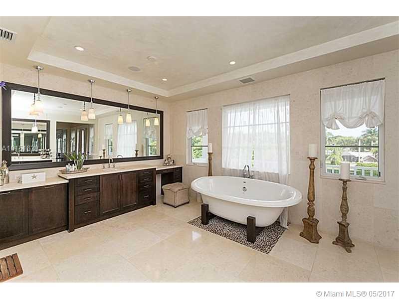Stunning plantation style lakefront acre estate! "2008" built Pinecrest gem! Refined with Venetian stucco, outstanding mill work, stone and hardwood flooring throught. Formal, elegant living and dining rooms. Fireplace. Gourmet dream kitchen. Additional media room and library. Separate in-law guest room and maid quarter. Lavish master with all deluxe features. All generous size bedrms with open and beautiful vistas! Beach entry infinity heated pool! Gorgeous back garden with lakefront drop! Oak-ladden lush lot with tropical plantings!