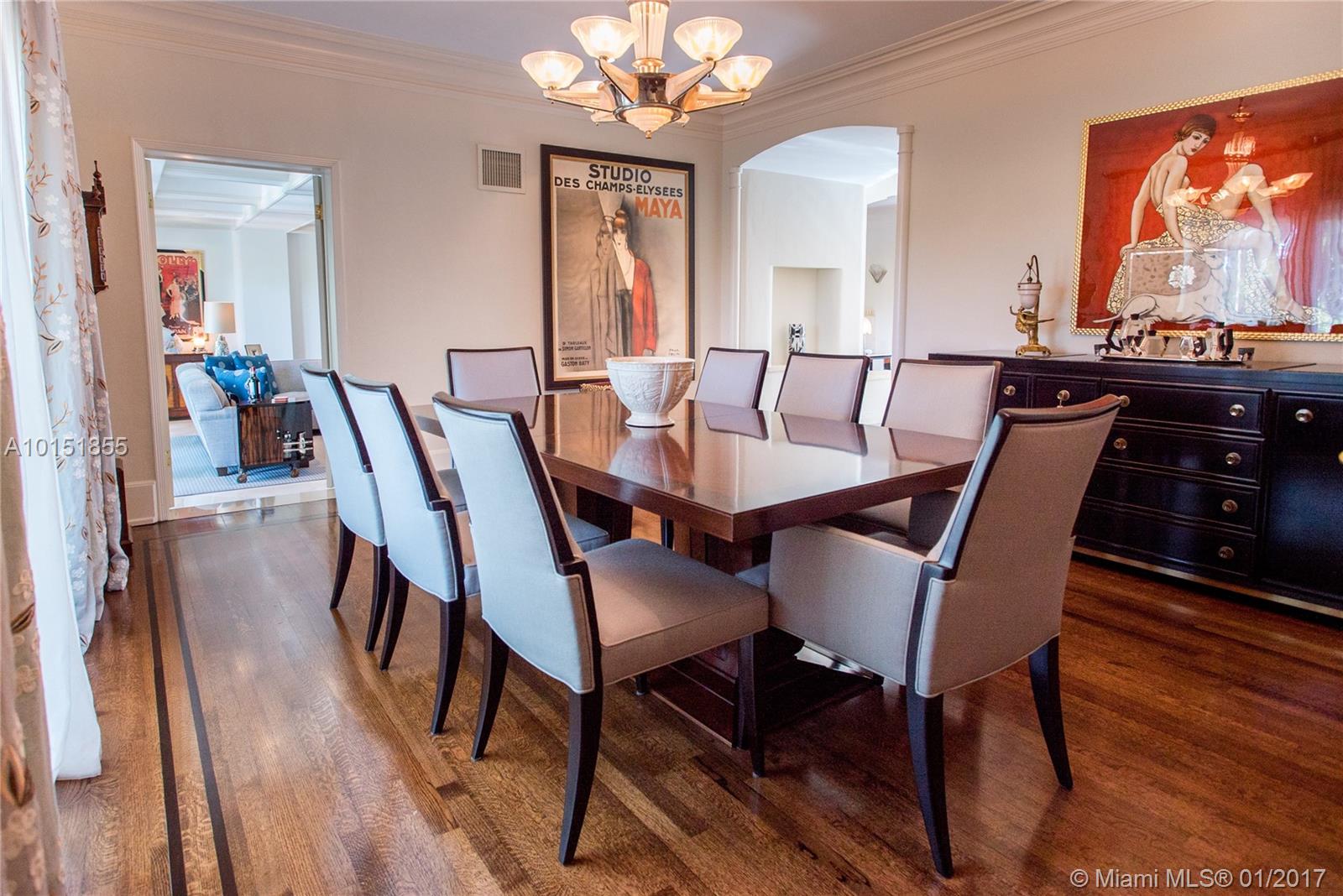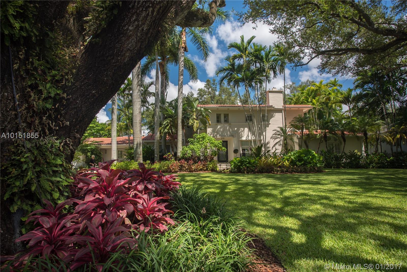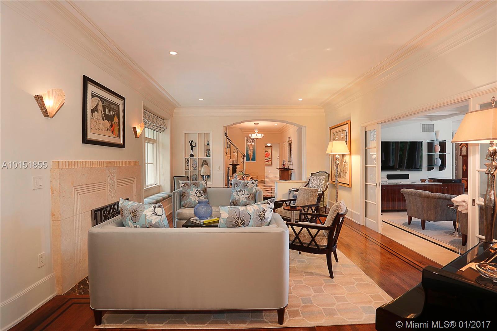 Truly exquisite 1935 Art Deco Estate w/ glorious vws of the Biltmore Hotel & Golf Course! Updated to perfection offering all of todays amenities while embracing original charm. Antique Pettito light fixtures, refinished wd flrs w/ inlay, matching art deco detail over front dr & mantle, crown molding, plantation shutters, impact drs & windows, coffered ceilings in fam rm, & original sliding wd drs make this home spectacular! Majestic oaks & 25,000+ SF meticulously landscaped lot w/ gorgeous pool & patio.