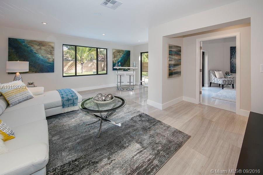 Completed in 2015, fully renovated modern home is epitome of luxury living. Natural light cascades through hurricane impact windows/doors, highlighting high end finishes & appliances. 4 bed/3+1 bath home features an open gourmet kitchen w/gas Viking cookt op island, glass staircase & bleached oak & stone accent walls. Enjoy views of the contemporary pool & manicured backyard from your ground floor master which boasts a spa like bathroom w/freestanding soaking tub & spacious shower and private pool access