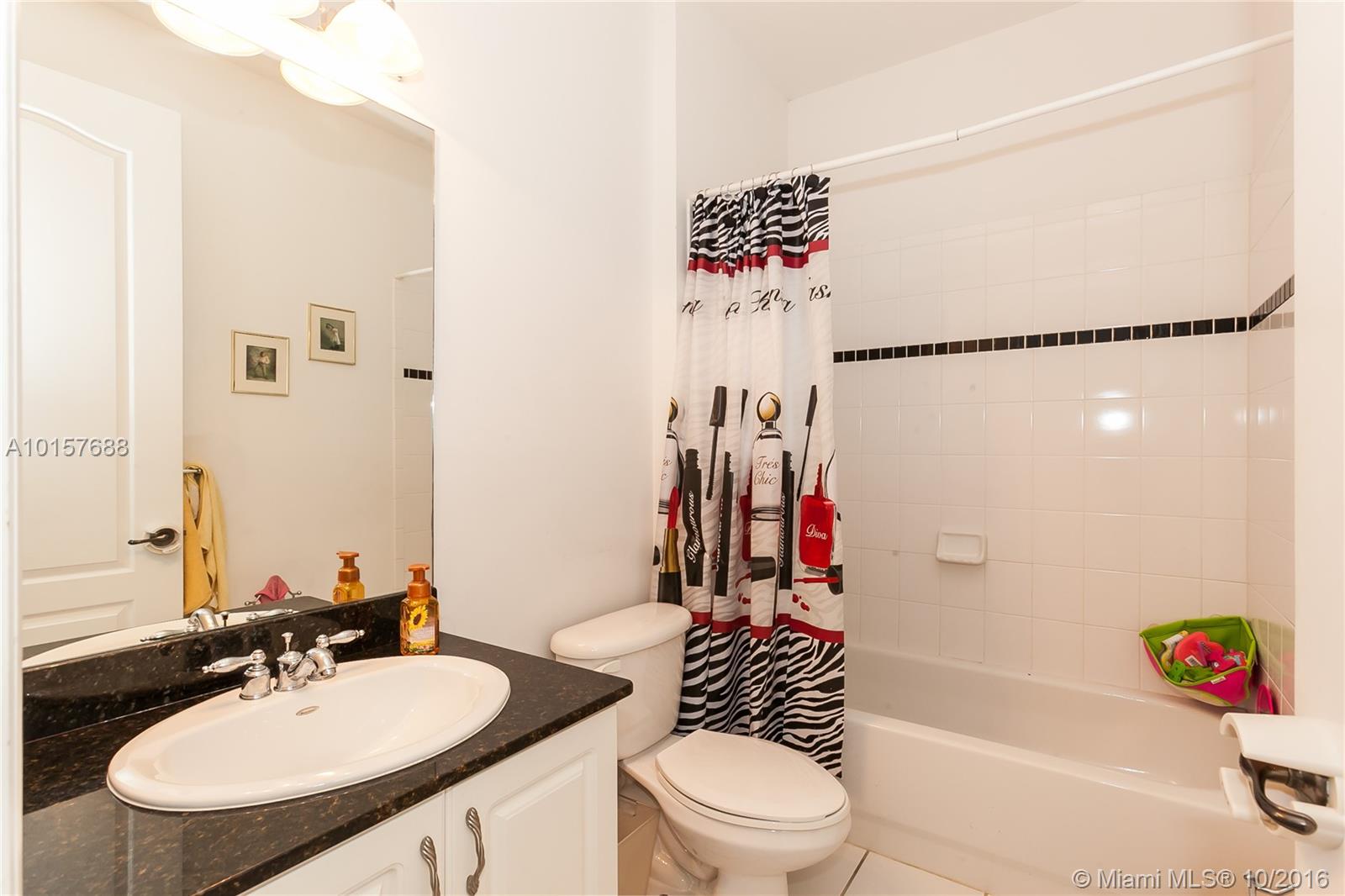 Rarely Available sought after Cimarron in Davie 3 bedrooms, 3 full bathrooms, plus a large Den and 1 car garage. One bedroom and full bath downstairs master is upstairs. Kitchen boasts Granite counters 42 inch wood cabinetry. Large Ceramic Tile floors Through living the area downstairs. Volume Ceilings, crown molding. Laundry room on the second floor. Master bedroom has his and her closets. Master bath has roman tub, large upgraded shower and dual vanities. Community Pool and playground.