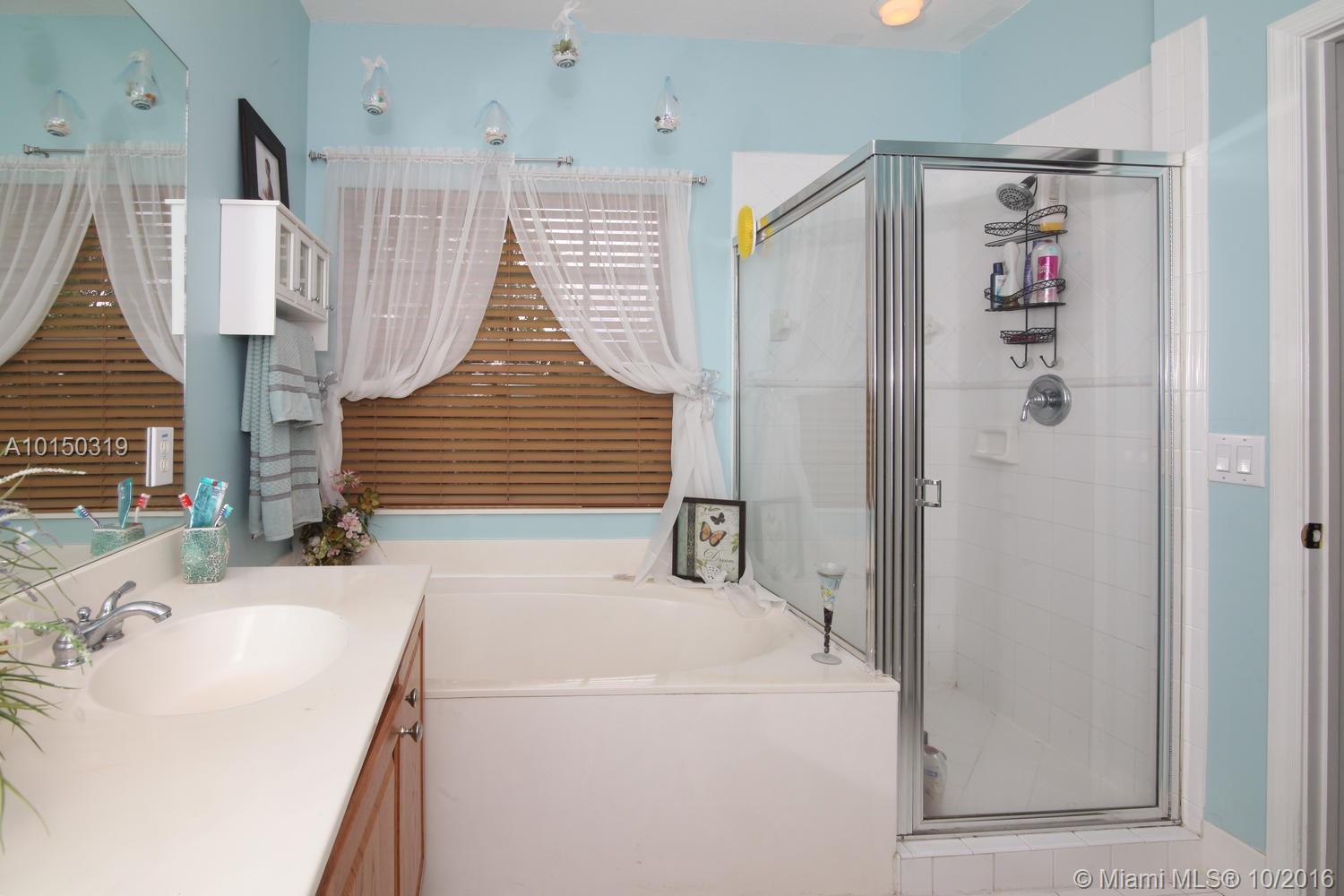 3 bedroom/ 3 full bath home with 2 car garage in prestigious Vizcaya. Features a private backyard perfect for entertaining, open eat in kitchen, breakfast bar, stainless steel appliances, 42" wood cabinets, Volume ceilings , bedroom plus full bath on first level. Upstairs 2 spacious master suites-full bathrooms/walk-in closets. Master bath: separate tub/shower, double sink vanity. Hurricane shutters, Low HOA fee includes gated entrance, pool, Exercise, tennis, lawn/ landscape, alarm & cable. MUST SEE!