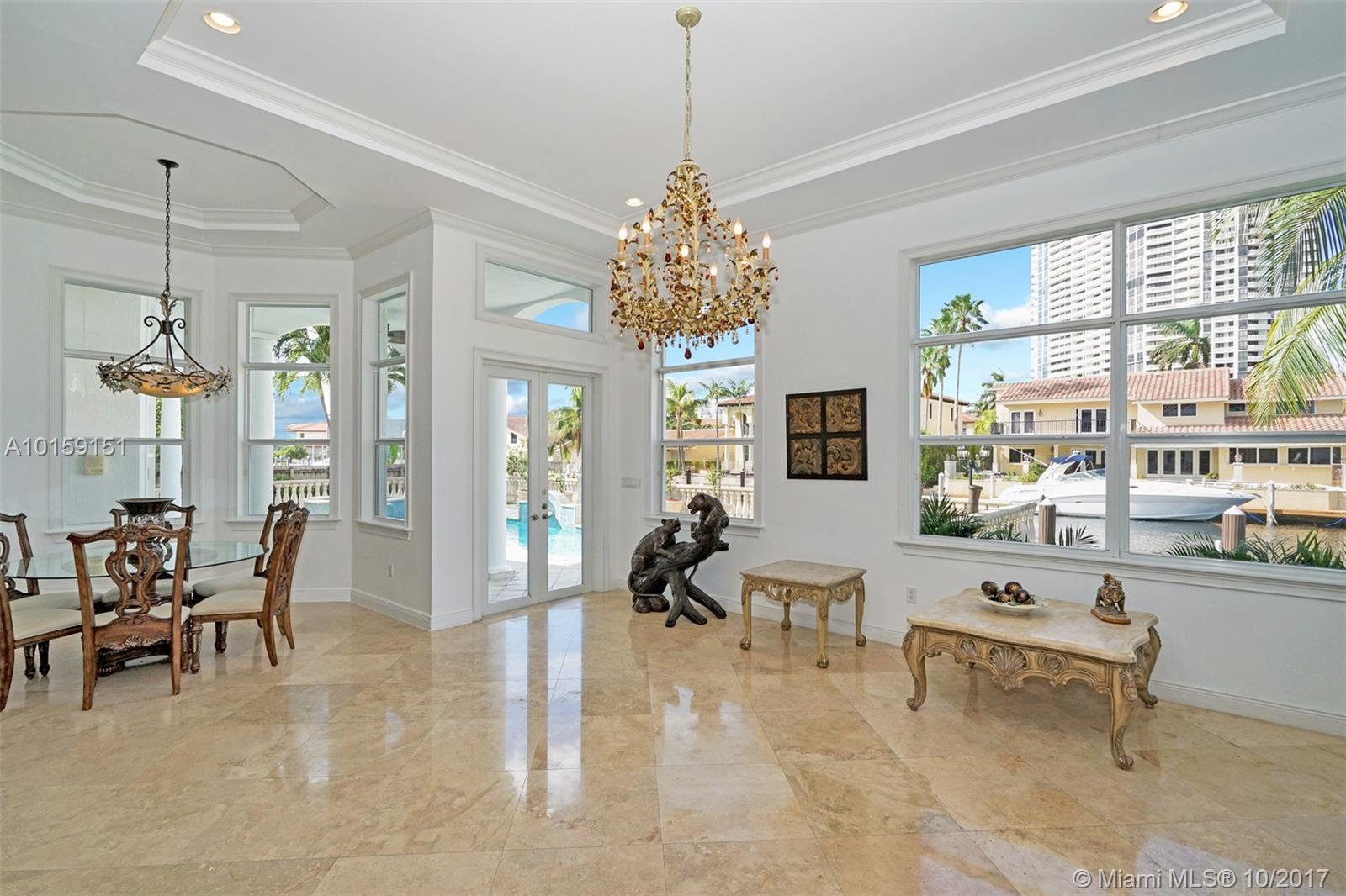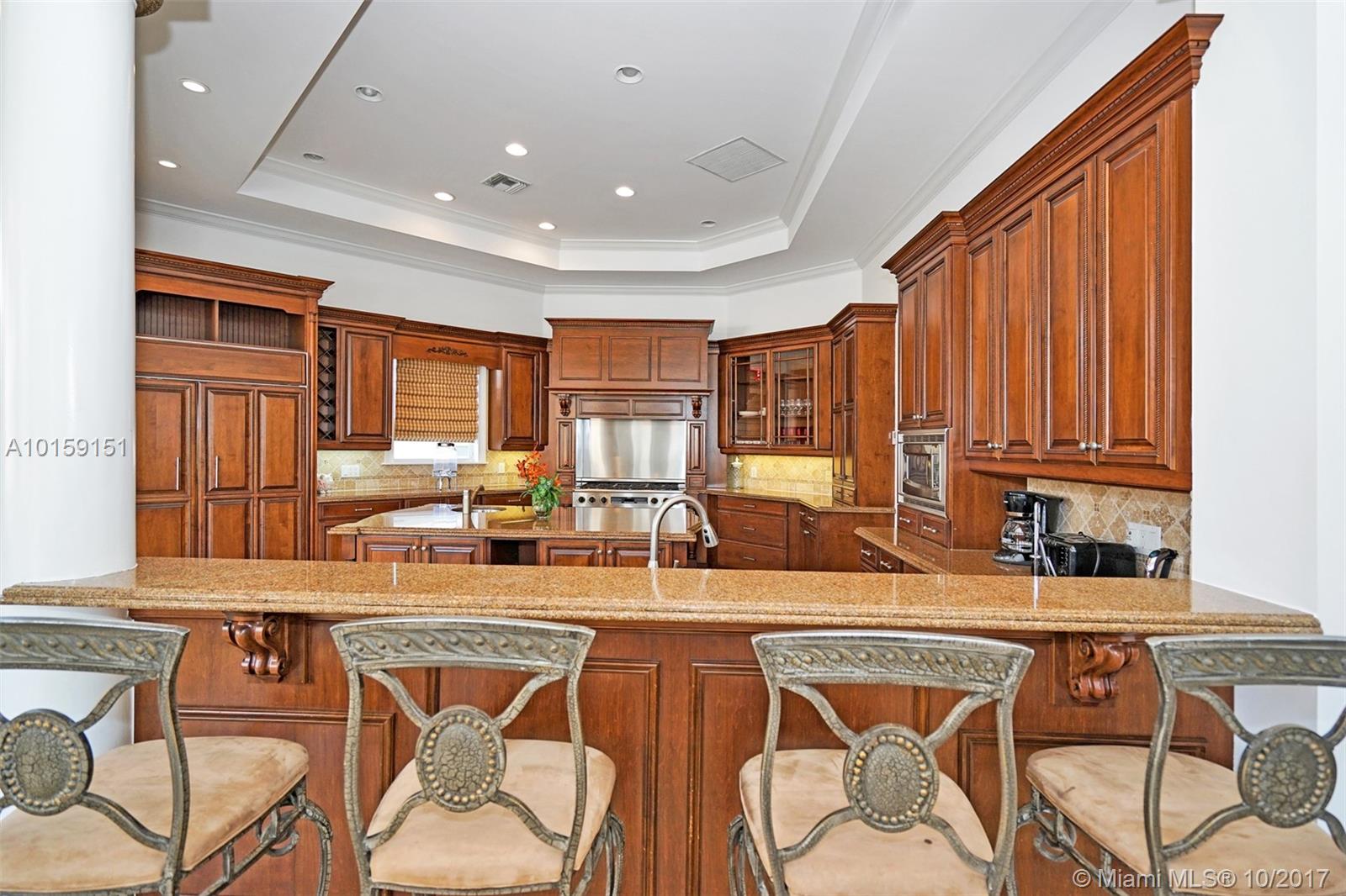 Magnificent 2 story Mediterranean-style waterfront estate w/ 80ft dock no fixed bridges to the ocean access, built in 2003 with many custom features throughout. This 5bdr 4 1/2bath property has open & spacious floor plan with grand foyer, elevator, vaulte d ceilings, columns, gourmet kitchen w/ custom cabinetry, grand master suite,office, Media room h/pool,Jacuzzi, 3 car garage. This property is located in the guard-gated community of Eastern Shores.