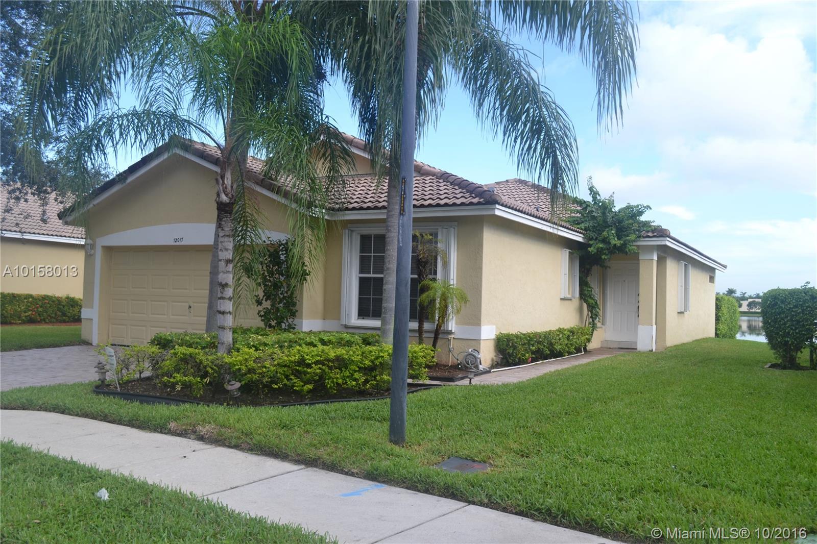 Beautiful lakefront 3 beds, 2 baths, 2 car gar home in excellent move-in condition with a great open floorplan, big eat in kitchen with all the appliances in good condition, tile in all living areas & laminate wood floors in all beds. Fenced yard with beautiful lake view, pavers in covered patio & driveway, accordion hurricane shutters. Well maintained gated pool community, $170 monthly fee includes basic cable & lawn maintenance. Great location in Pembroke Pines close to mall, shopping, hospital & parks.