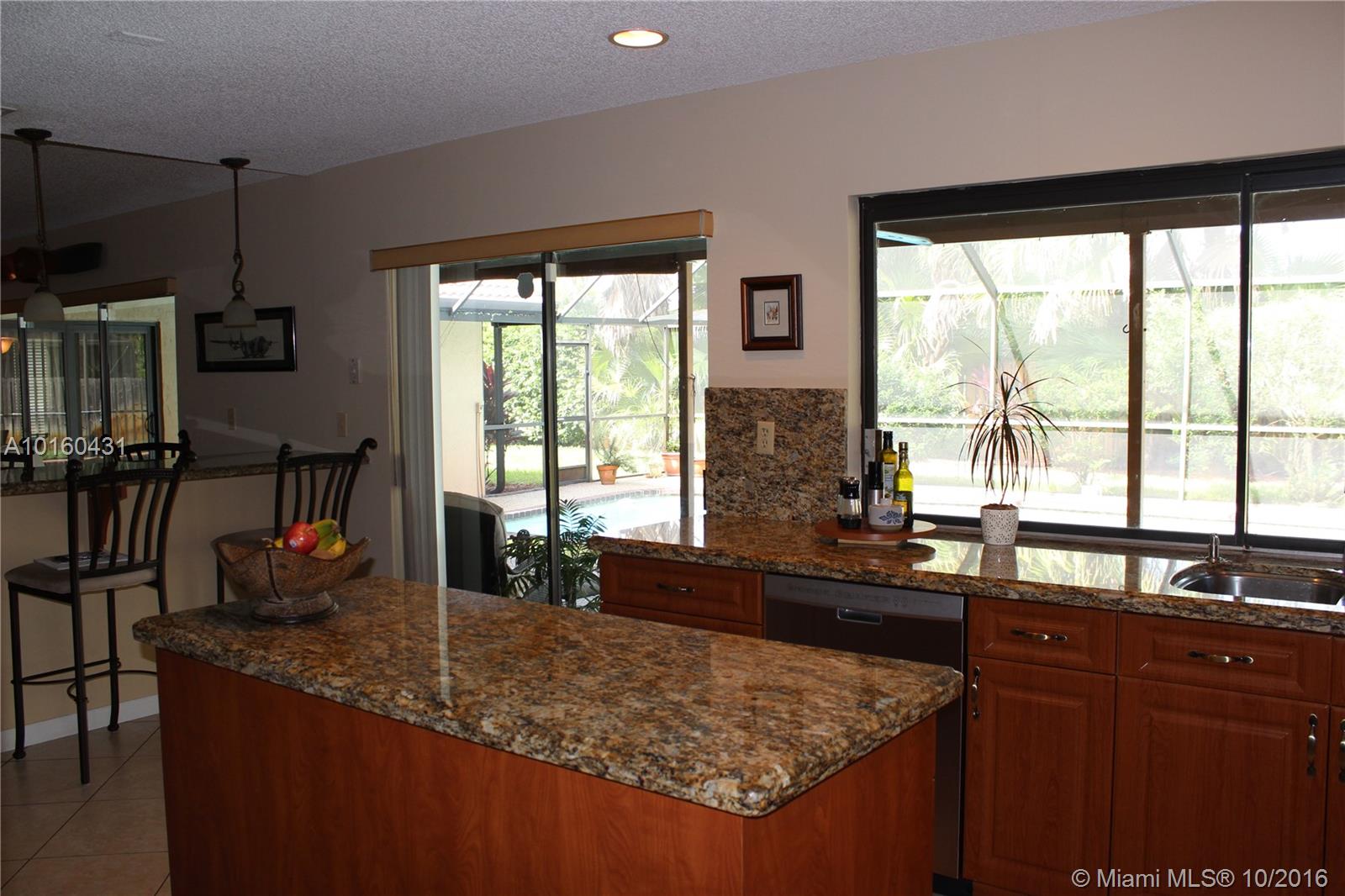 Beautifully maintained and updated home. Newer kitchen with granite counter tops, pass through to pool/patio,tile throughout and laminate flooring in 3 of the 4 bedrooms. This home has 90% of the windows and doors upgraded to impact windows. Spectacular screened in pool area with large over hang and lush landscaping for privacy while enjoying the outdoors. Vaulted ceilings in common areas, open dining room with great views of back yard and pool. This is 1 home you can actually move into the day you close!